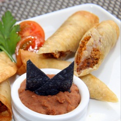 Con cochinita pibil, queso, frijoles y arroz. Un sabor que te encantará.