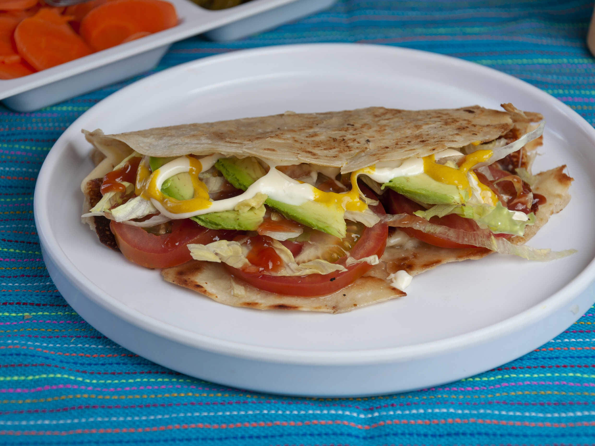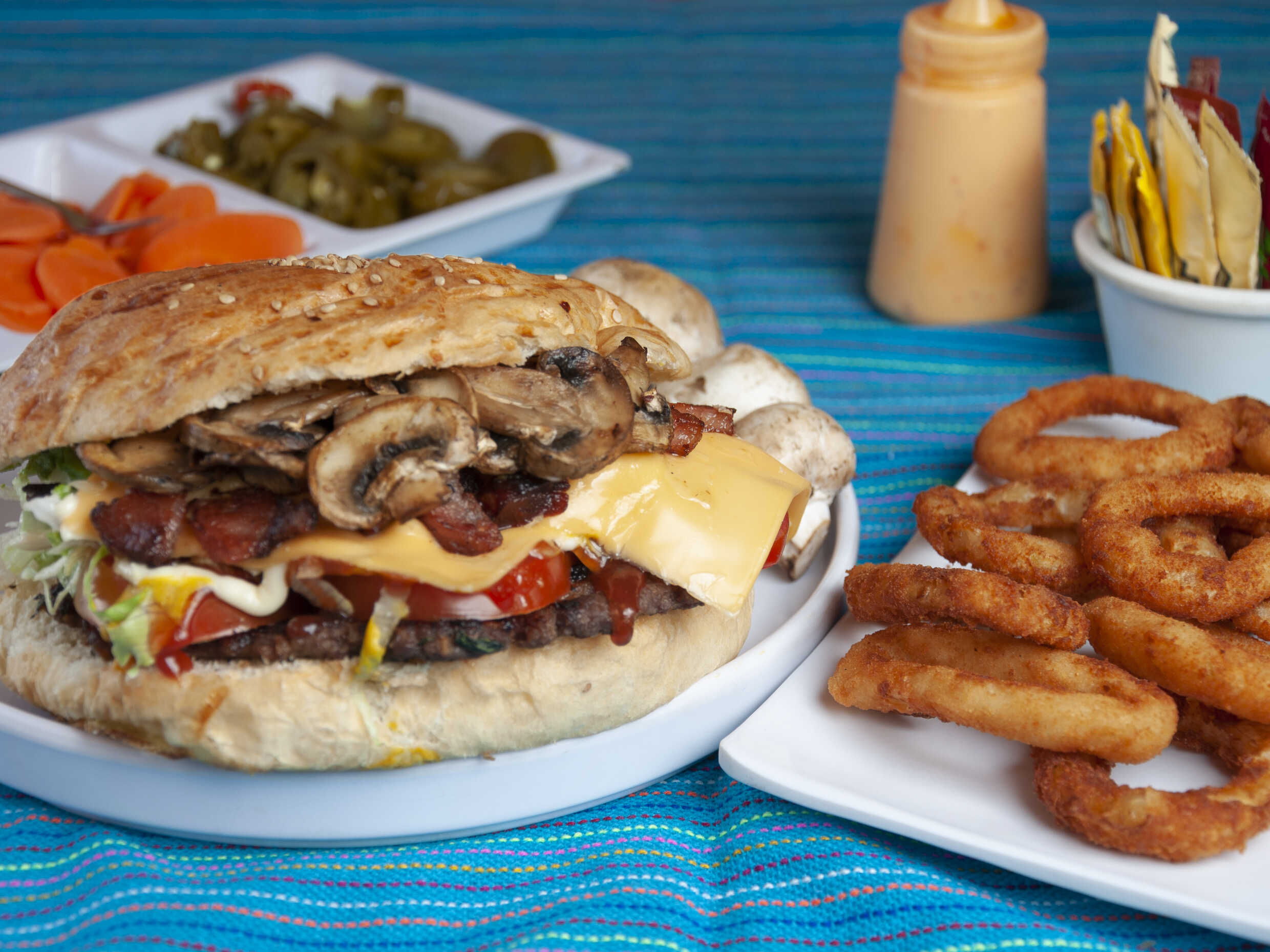 Plancha de queso con piña o champiñón, jitomate, lechuga, aguacate, catsup, mayonesa y mostaza.