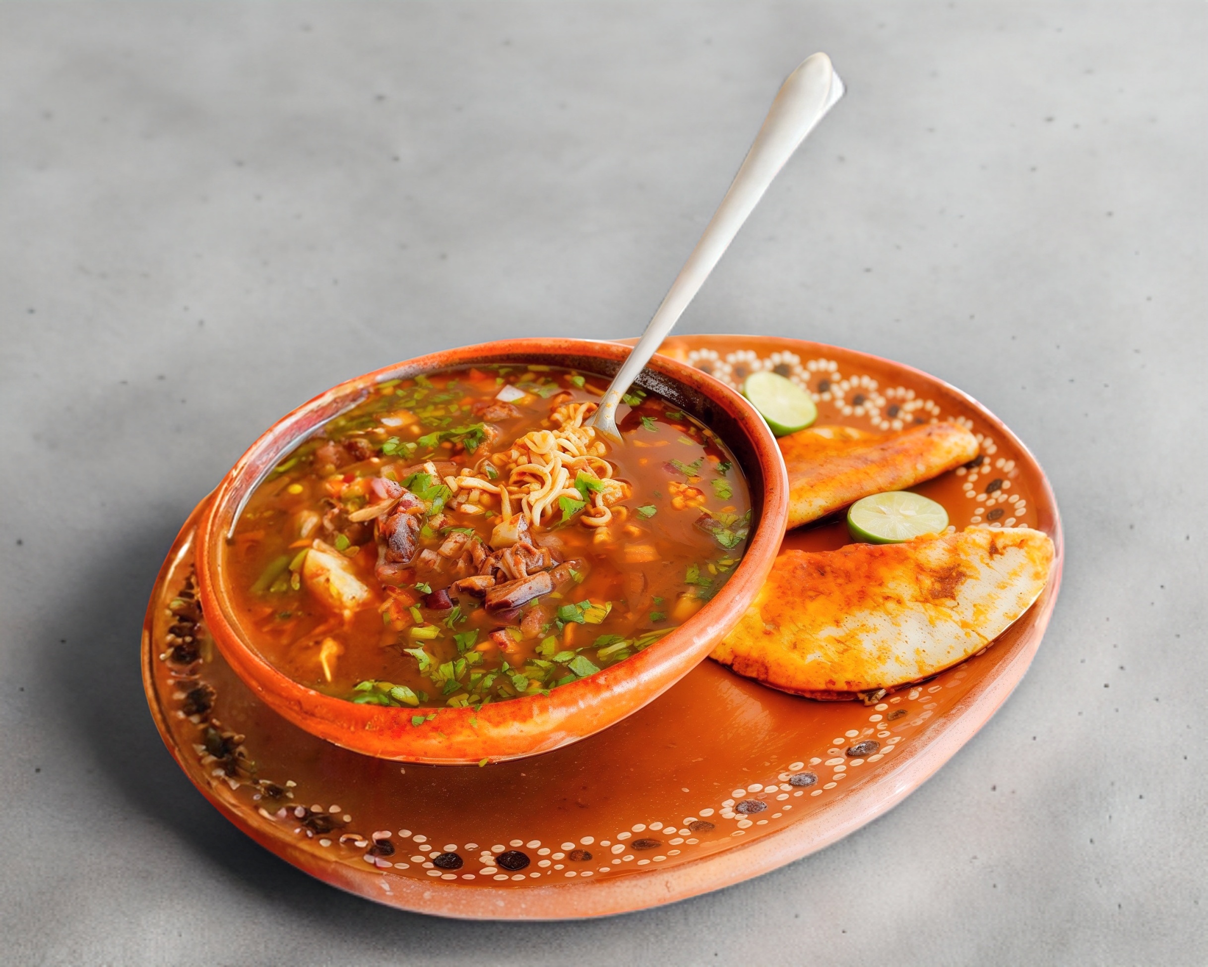 atrevete a probarla, sopa instantanea ramen preparada con consome de birria y acompañada de dos quesabirrias, verdura y salsa