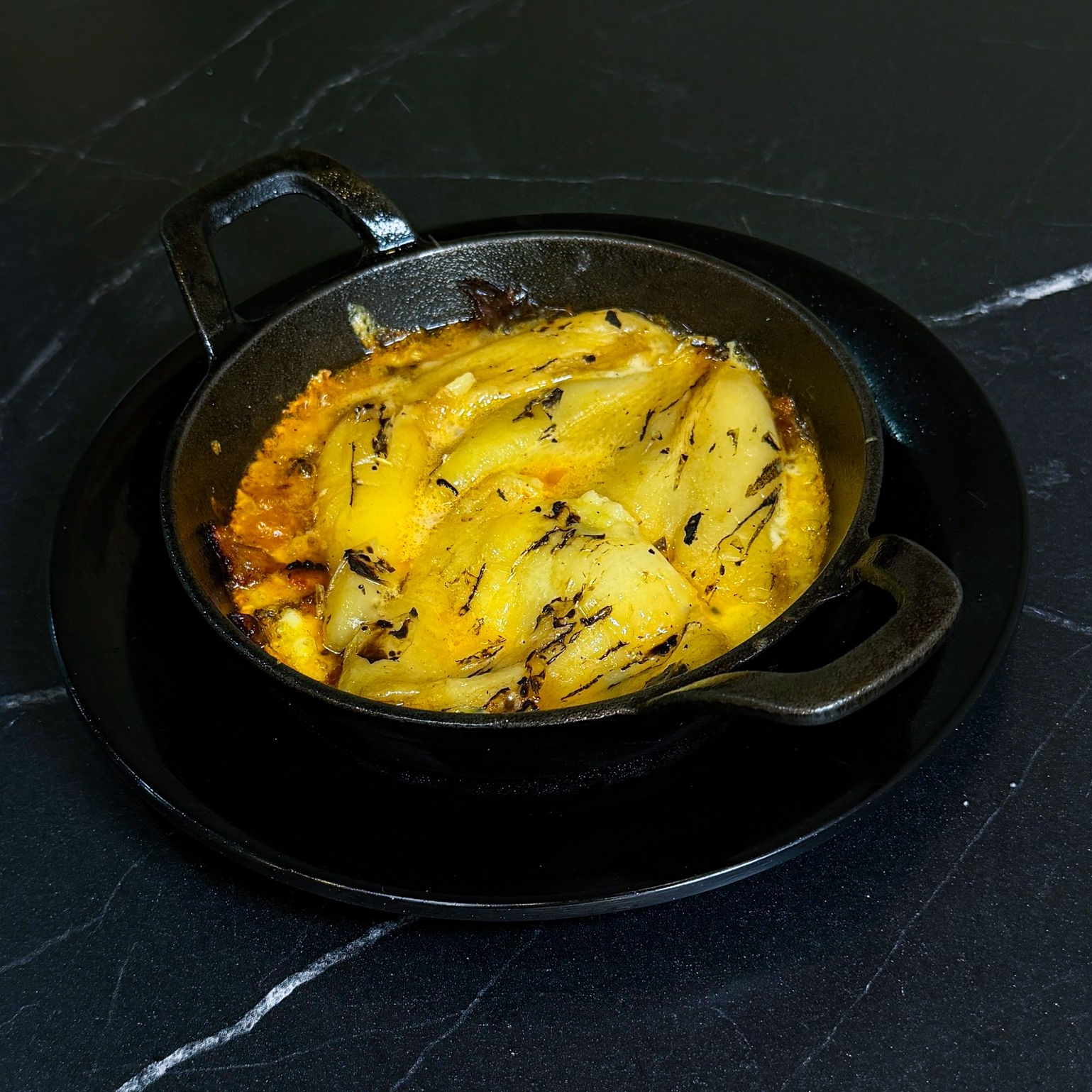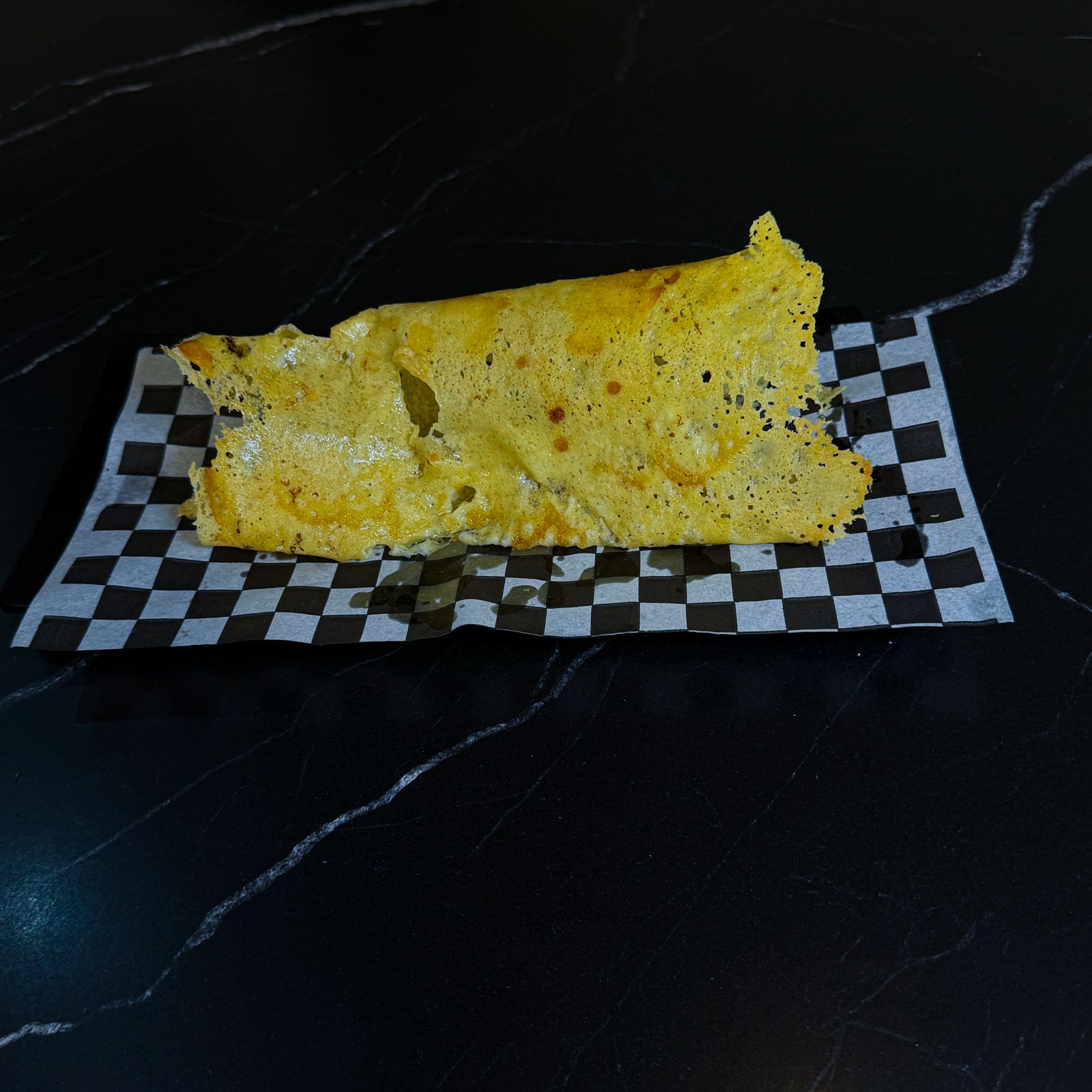 Carne al pastor envuelta en una deliciosa costra de queso dorado.