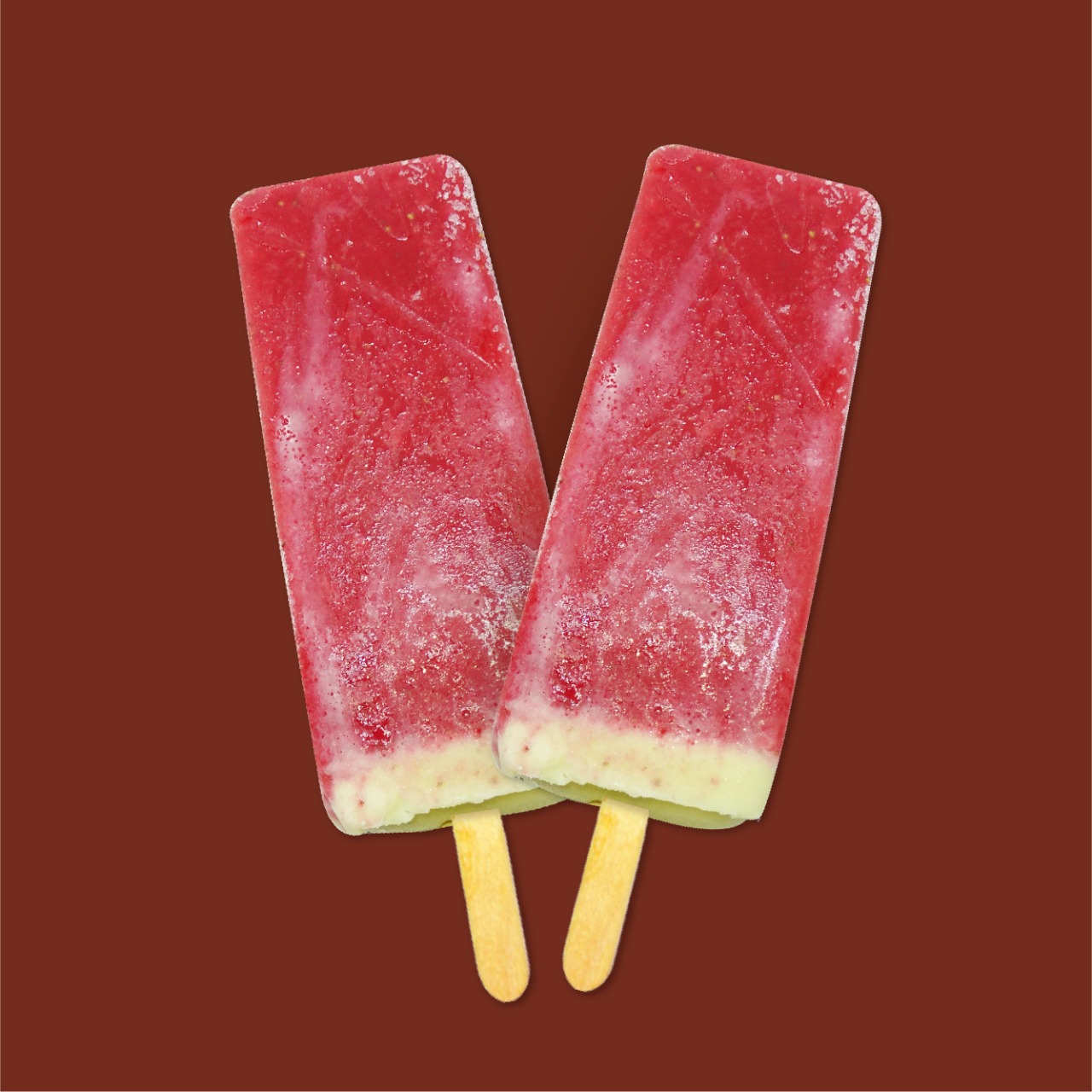 Deliciosa paleta de fresa de agua natural, rellena de vainilla.