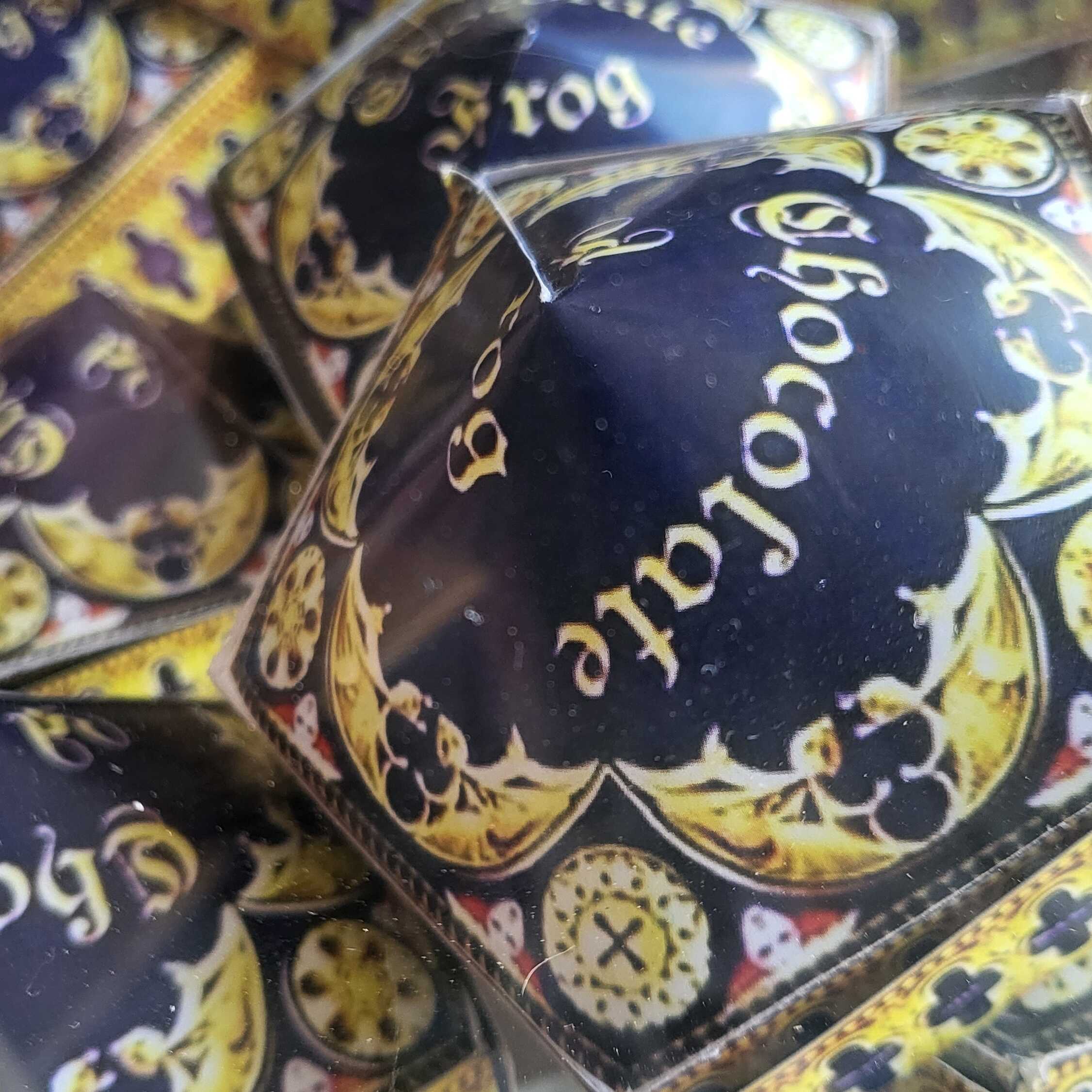 Caja con rana de chocolate y tarjeta de personaje