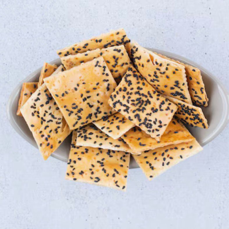 Crujientes galletas recien horneadas con ajonjoli negro y mantequilla