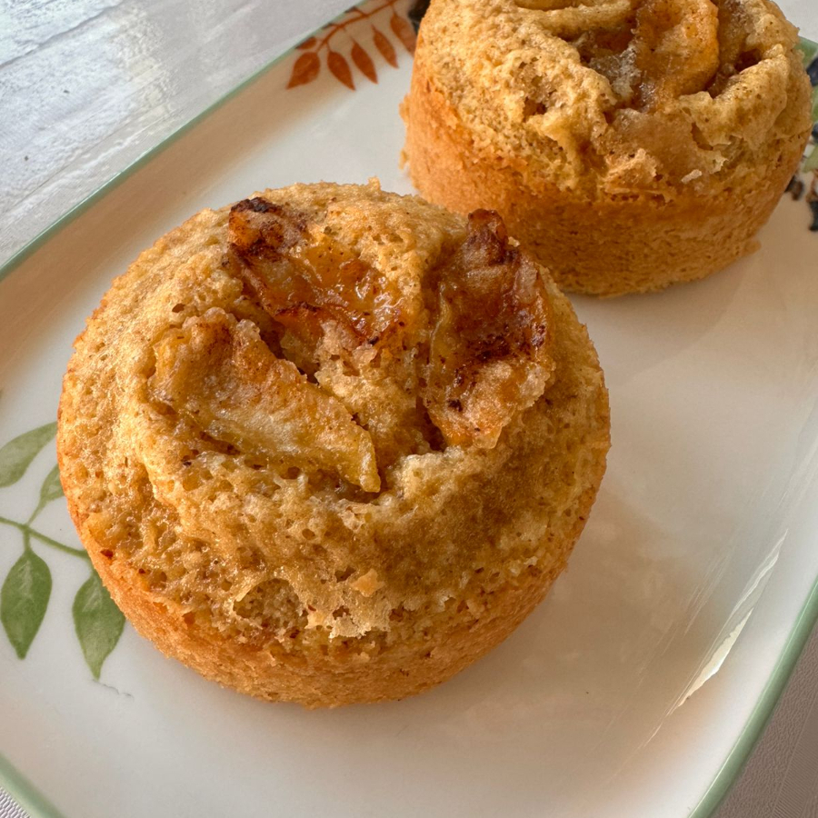 Exquisito bizcocho de almendra con trozos de manzana decorado con manzana caramelizada