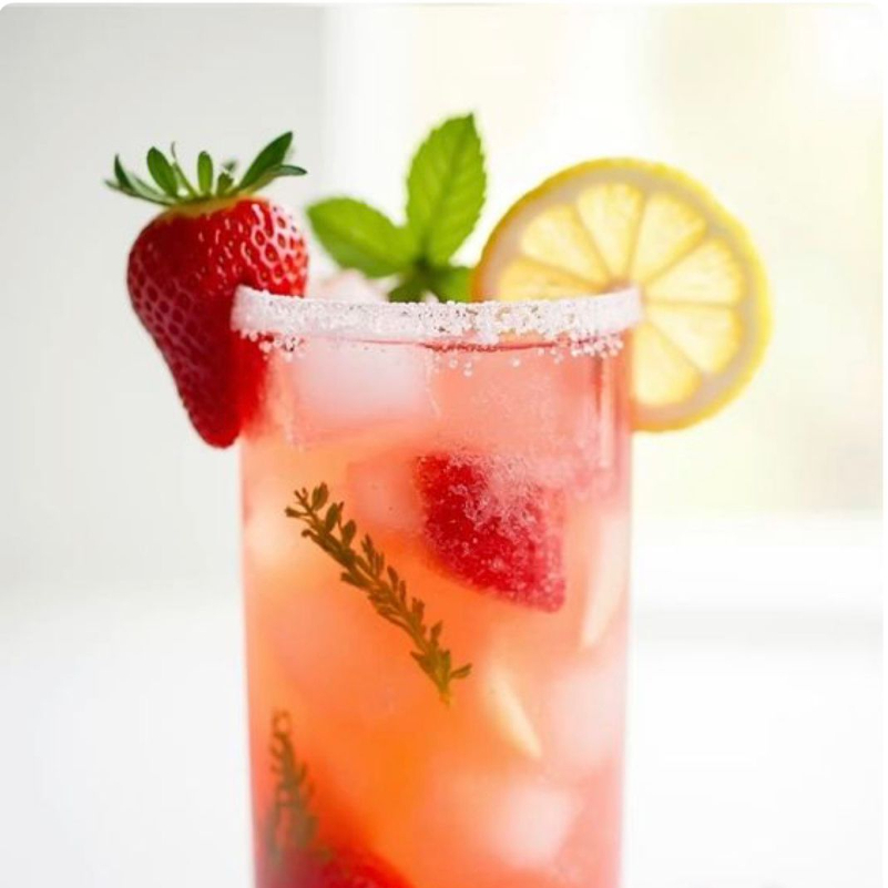 Refrescante bebida a base de limonada mineral más fruta de temporada fresca machacada al momento