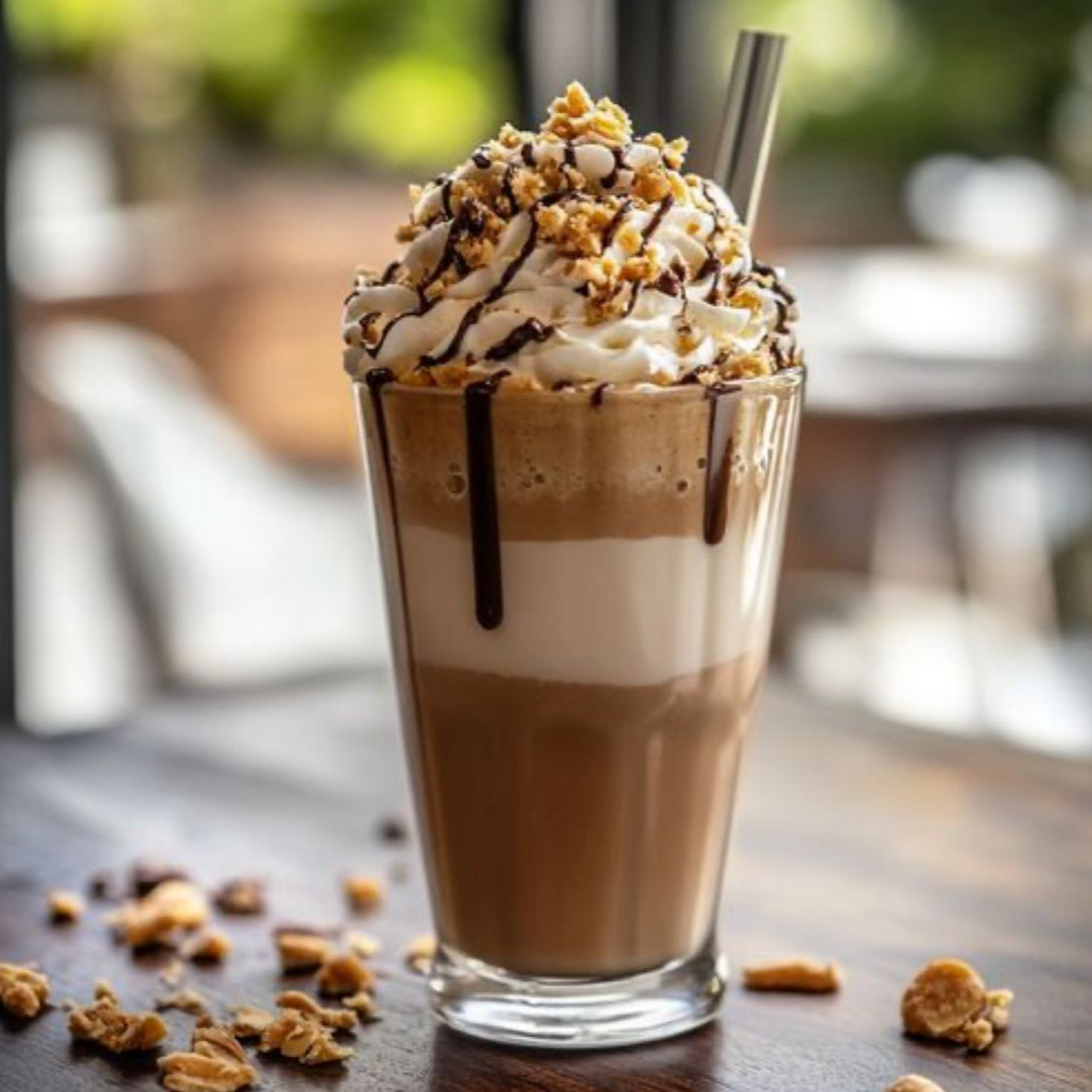 delicioso y cremoso frappe sin cafe, coronado con crema batida