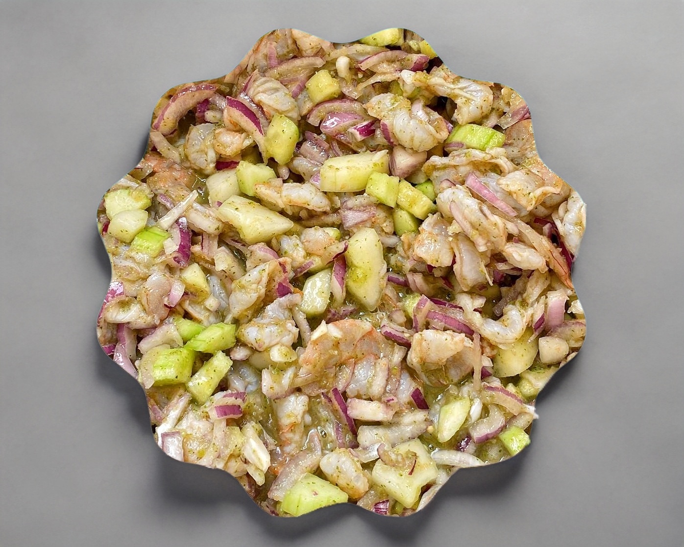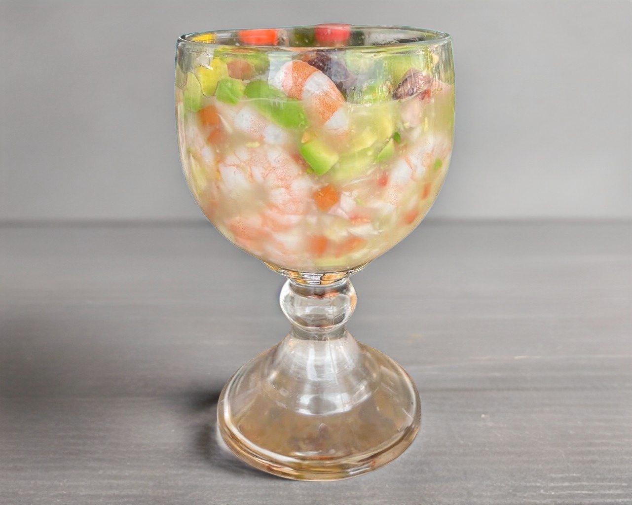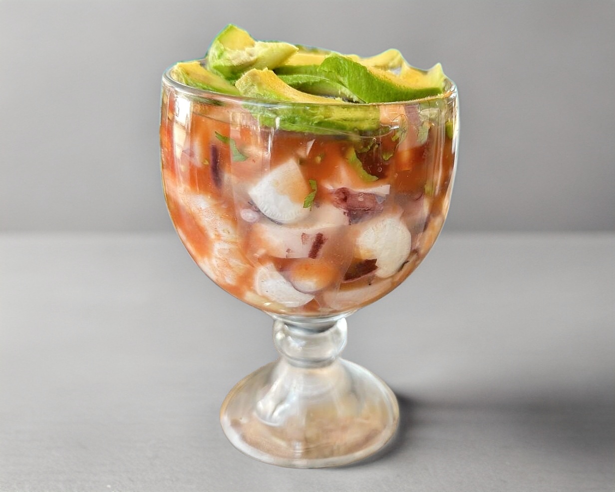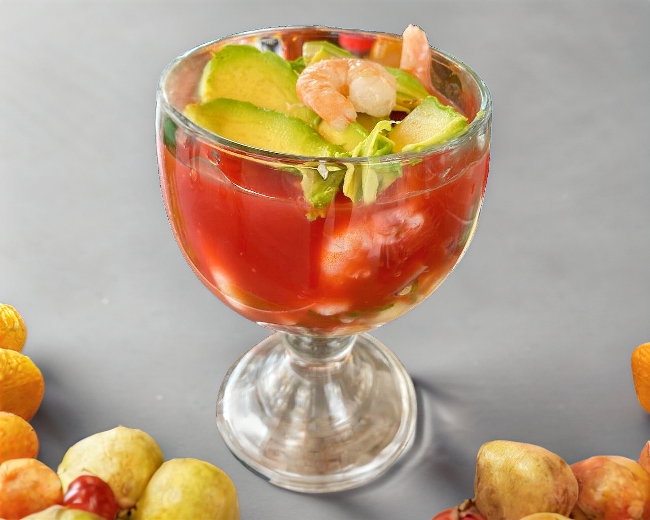 Variedad de frescos y grandes mariscos , acompañados de aguacate, jitomate, cebolla, cilantro y un toque de limón en una deliciosa salsa de catsup. Incluye galletas y salsa.