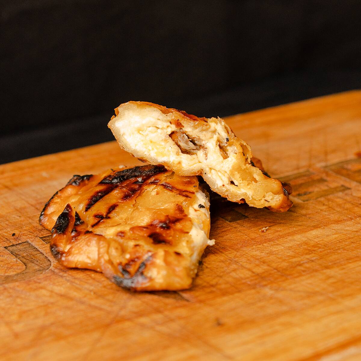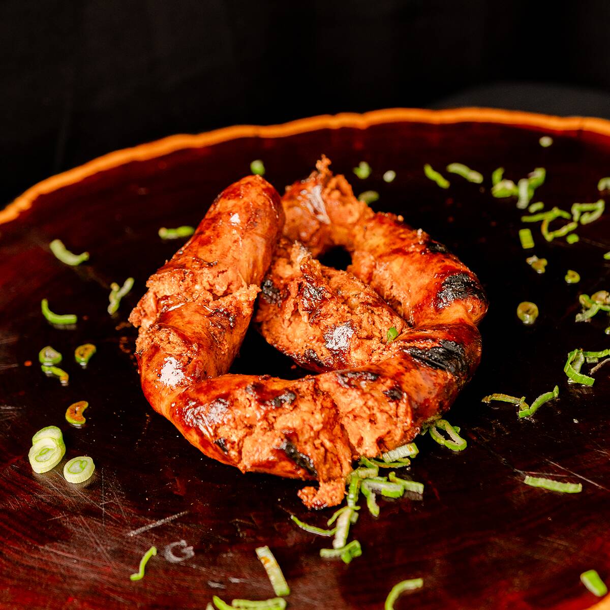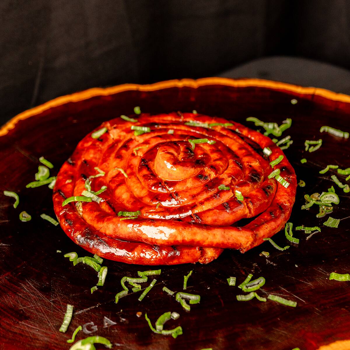 Hamburguesa de Arrachera, Chistorra, Queso Blanco y Aderezo de Habanero. Viene con orden de papas a la francesa.
