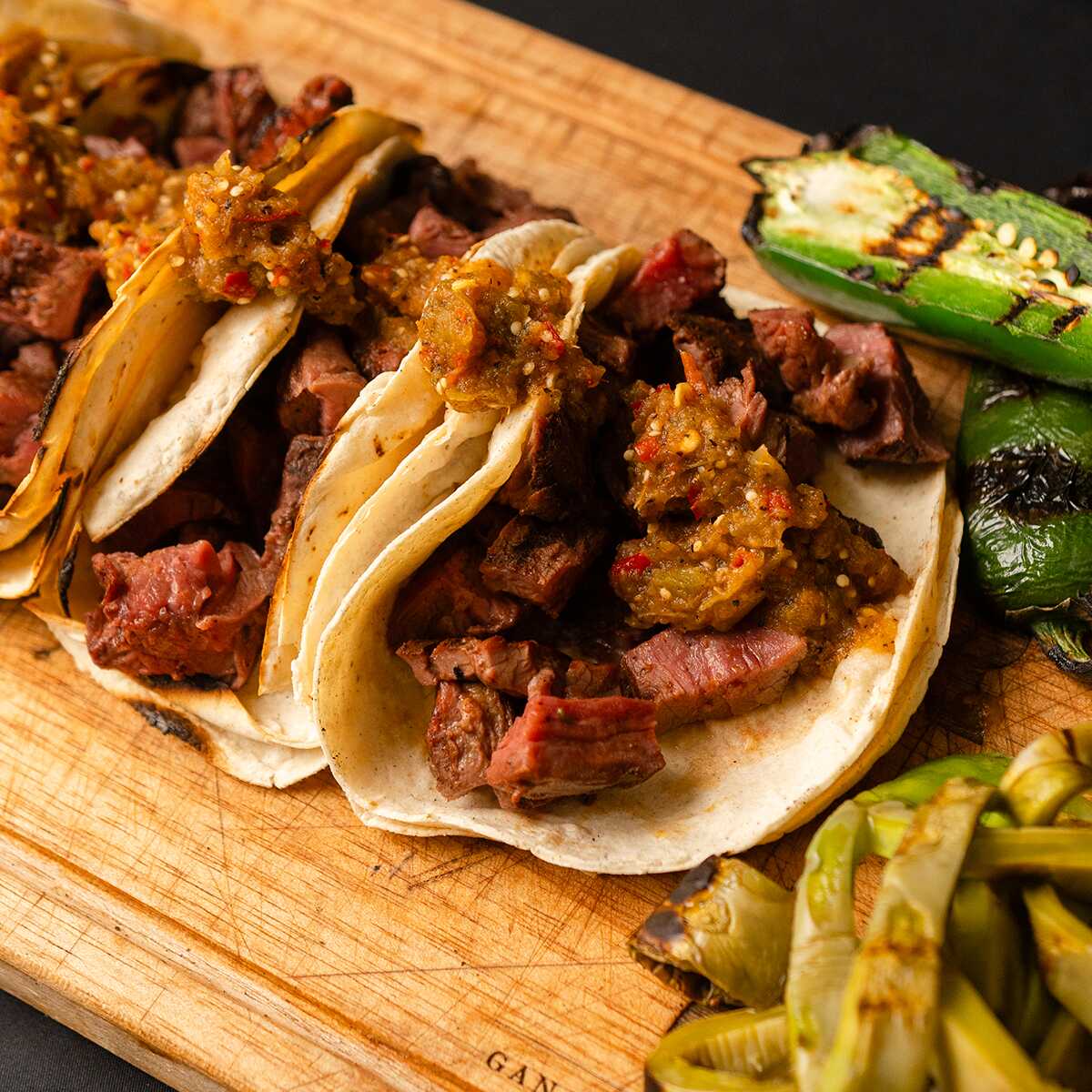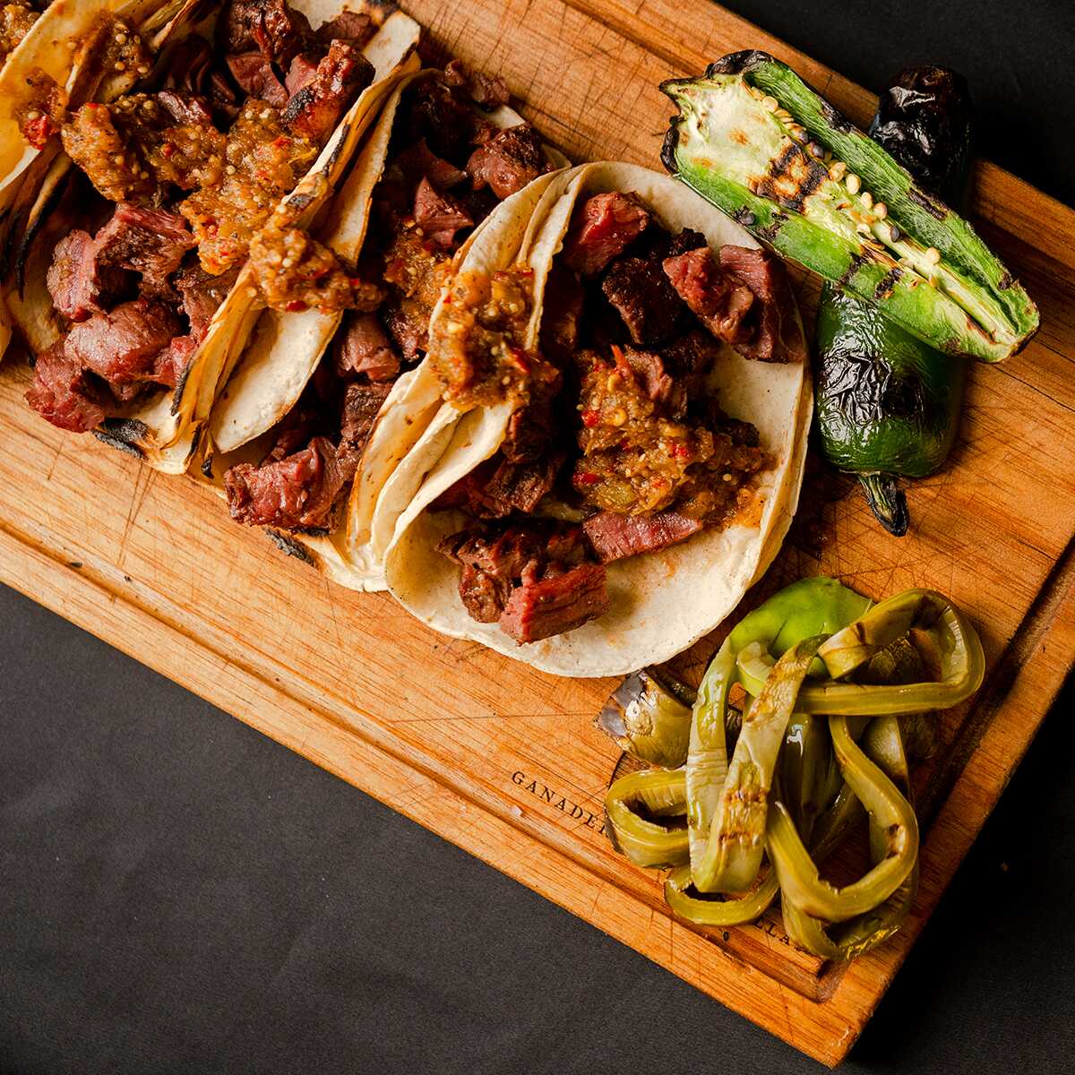 Todos los cortes van acompañados de tortilla, cebolla, nopal, chile y salsa.