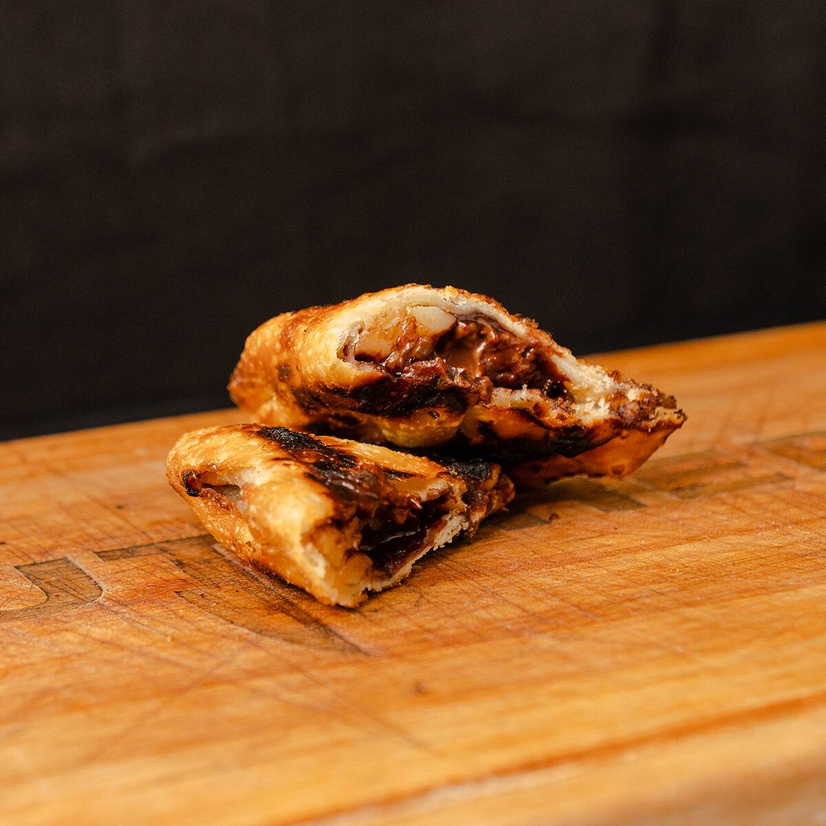 (6 personas). 1 Chistorra. 1 Papa Rellena. 1 Torta de Rib Eye. 1 Hamburguesa Red Angus. 1 Hamburguesa Black Angus. 1 Black Baldy Dog.