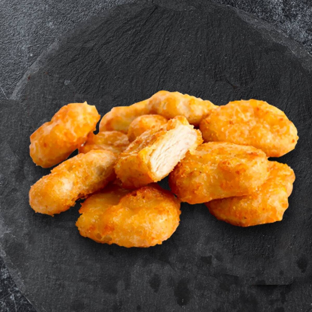 Orden de deliciosos nuggets de pollo acompañados con catsup.