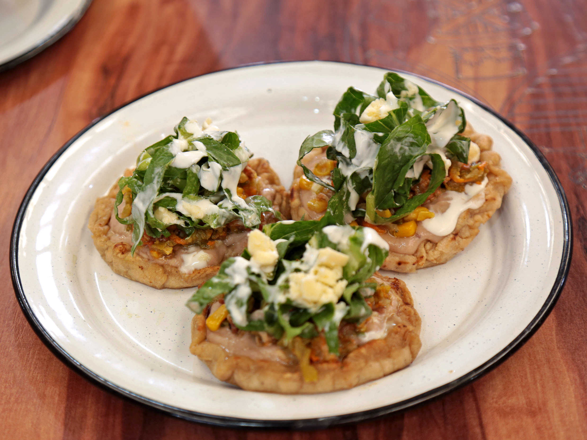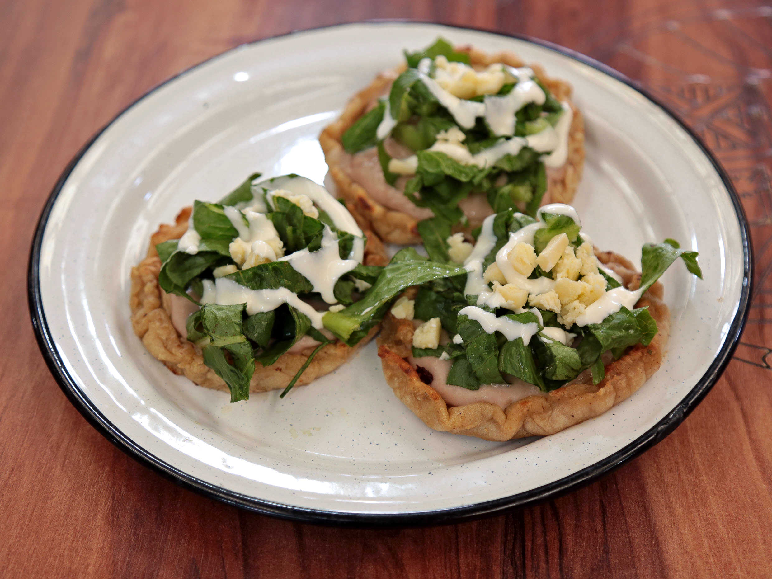 (3pzs) Con frijoles , lechuga, crema y queso fresco.