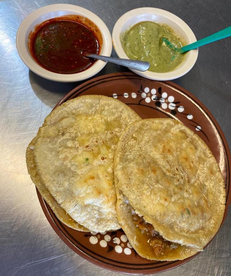 Porción personal: Gordita de maíz rellena y acompañada del guisado de tu elección, con salsas tipo rancho.