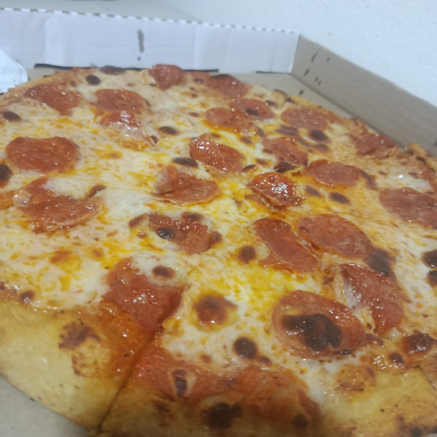 Queso Mozarella, Peperoni, Champiñones, Pimiento Morron