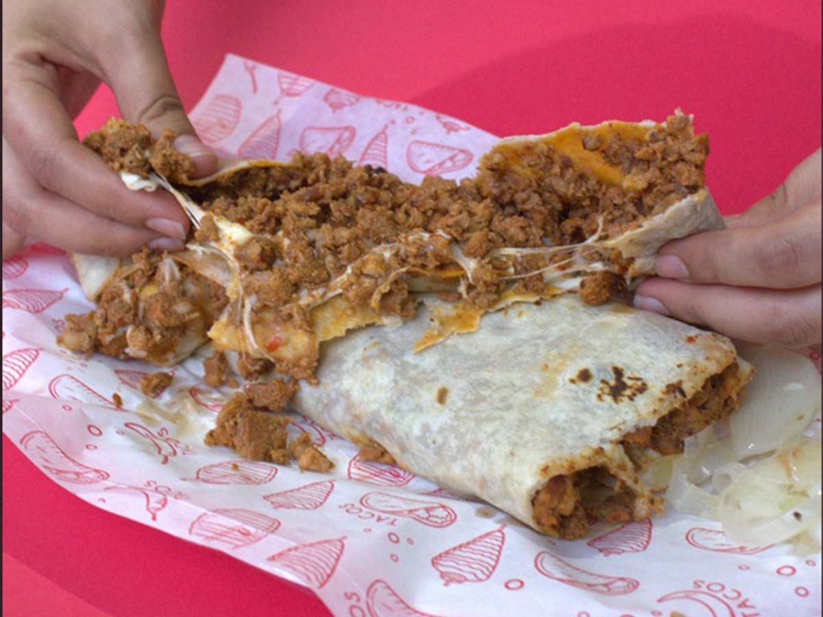 Tortilla de harina, pastor y queso