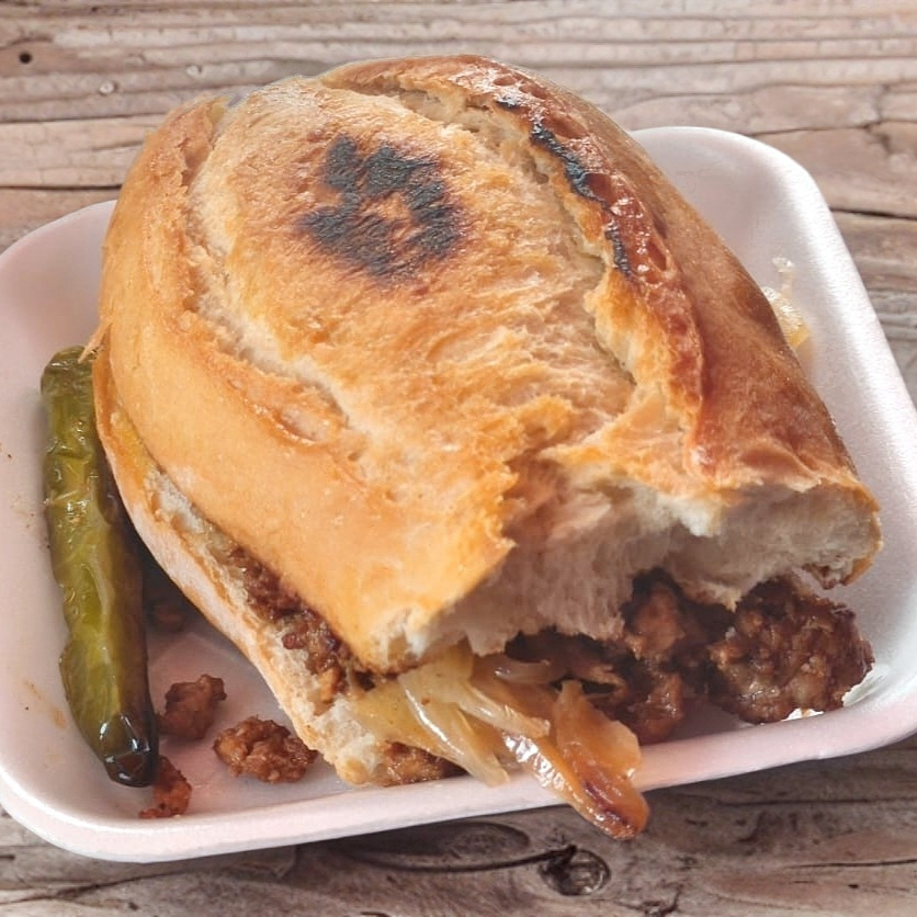 Tradicional bolillo con bistec y queso gratinado.