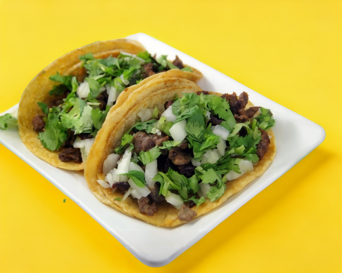 Delicioso bistec servido en tortilla de maíz.
