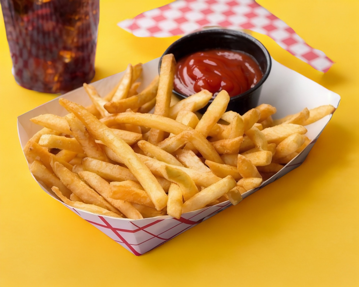 Papas a la francesa extra crujientes acompañadas con salsa catsup.
