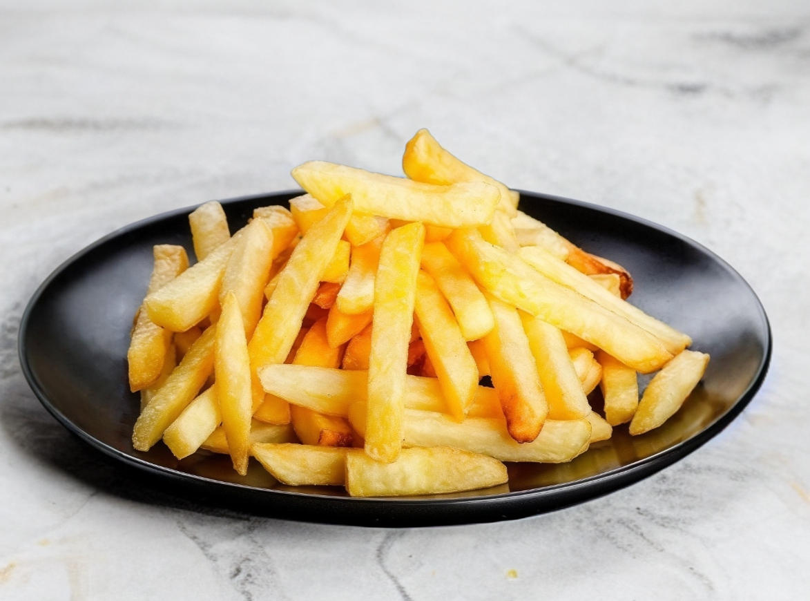 Clásicas papas a la francesa doradas y saladas. ¡El complemento perfecto para tu hamburguesa!