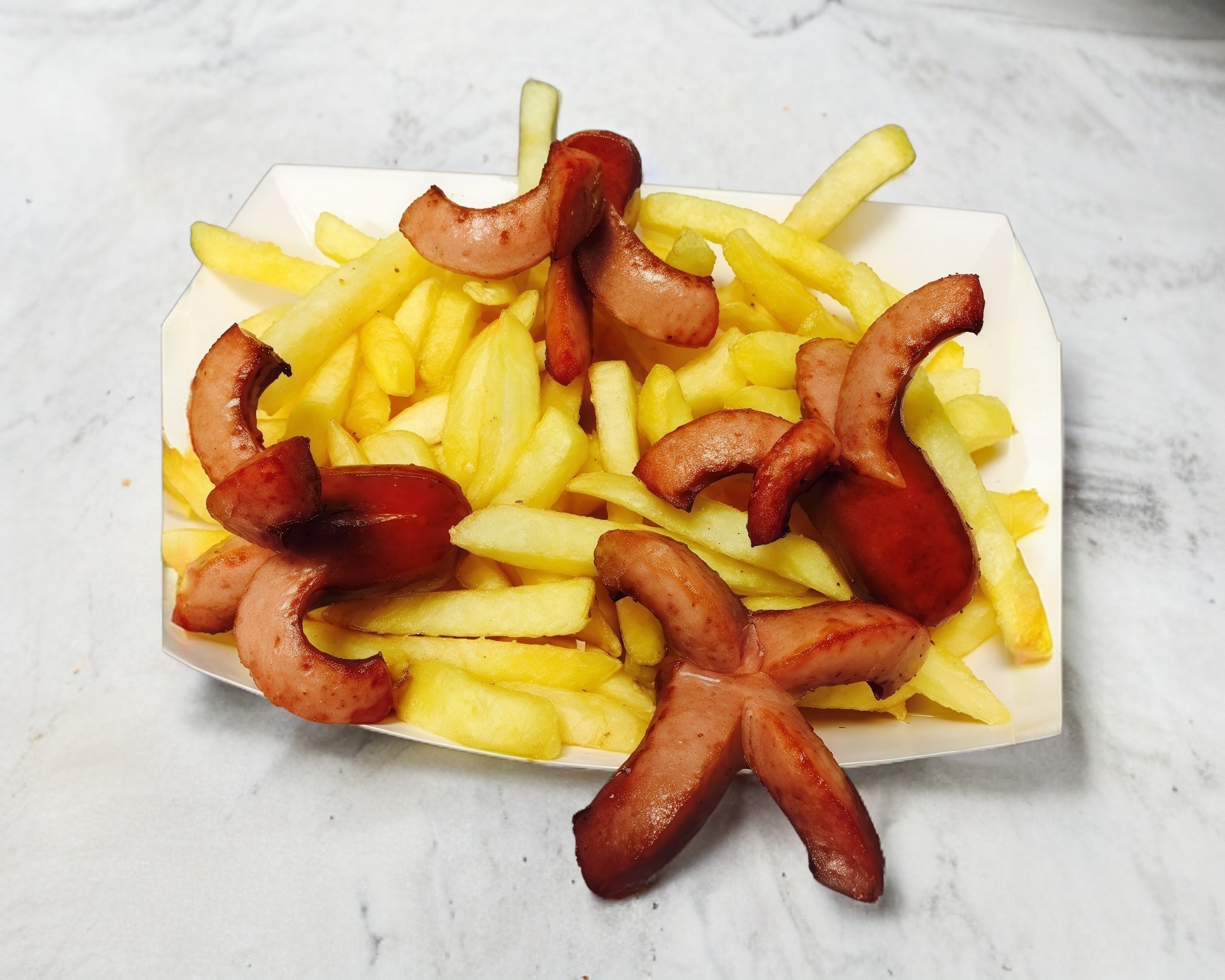 200grs de papa francesa, acompañado de 7 a 9 salchipulpos. Incluye un dip de 2oz de catsup.