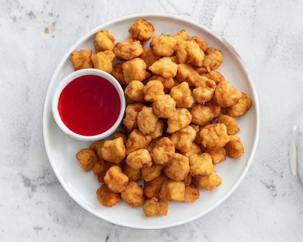 Delicioso pollo sazonado y empanizado con un dip de salsa a tu eleccion.