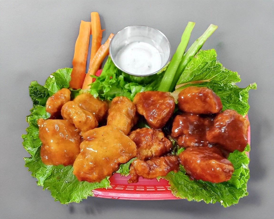 660 gr de boneless de pollo, incluye aderezo ranch y vegetales: apio y zanahoria.