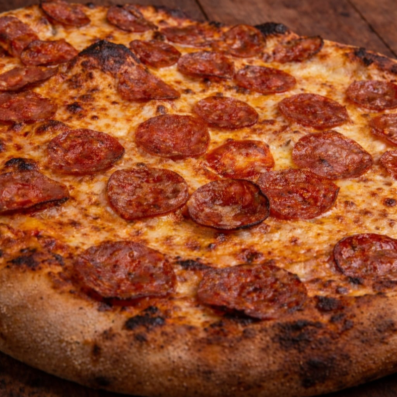 Salsa pomodoro, queso mozzarella, parmesano y pepperoni. Tamaño grande 35 cm.