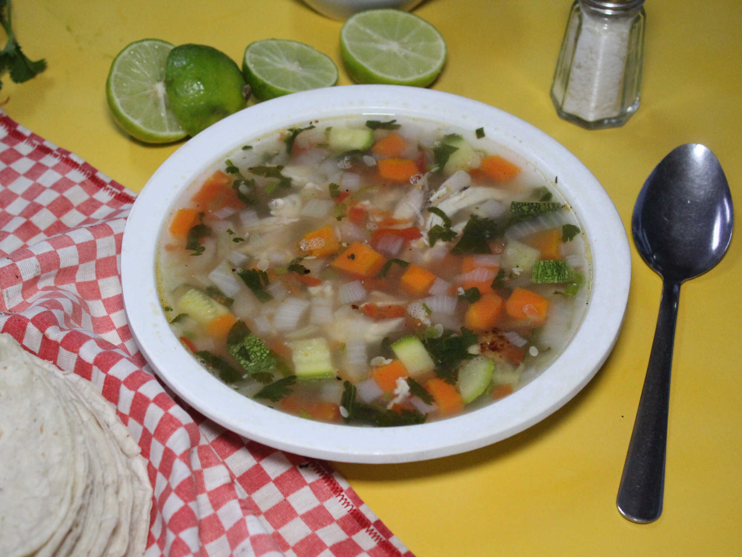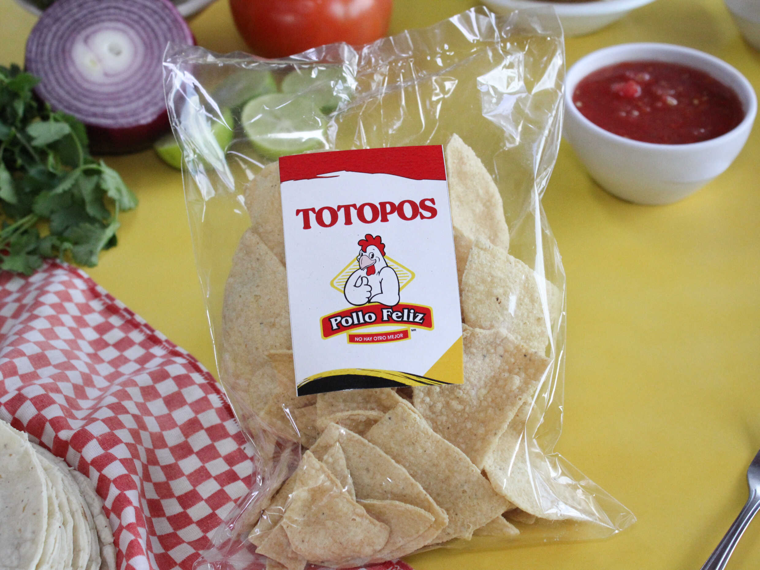 Paquete con un pollo entero, tortillas hechas a mano y salsa, acompañado por dos complementos de tu elección.