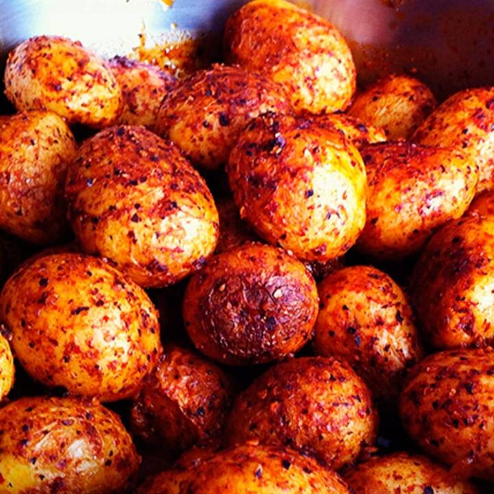 Deliciosas papitas adobadas con ajo y chile guajillo.
