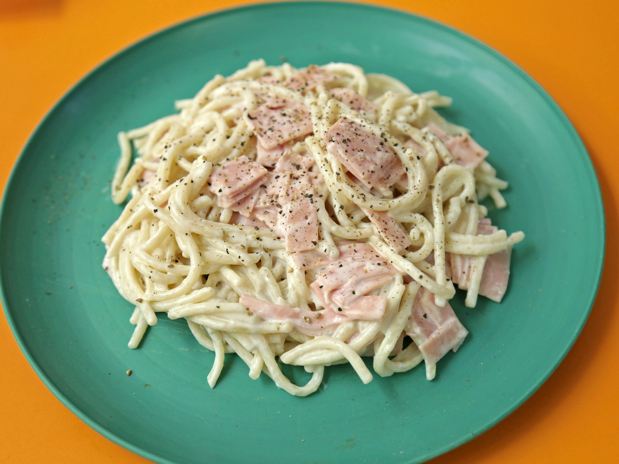 Pasta con Crema y Jamón (¼ Litro) – Cremosa, suave y deliciosa. Preparada con crema fresca, trocitos de jamón y el toque casero perfecto para acompañar tus platillos o disfrutar sola.