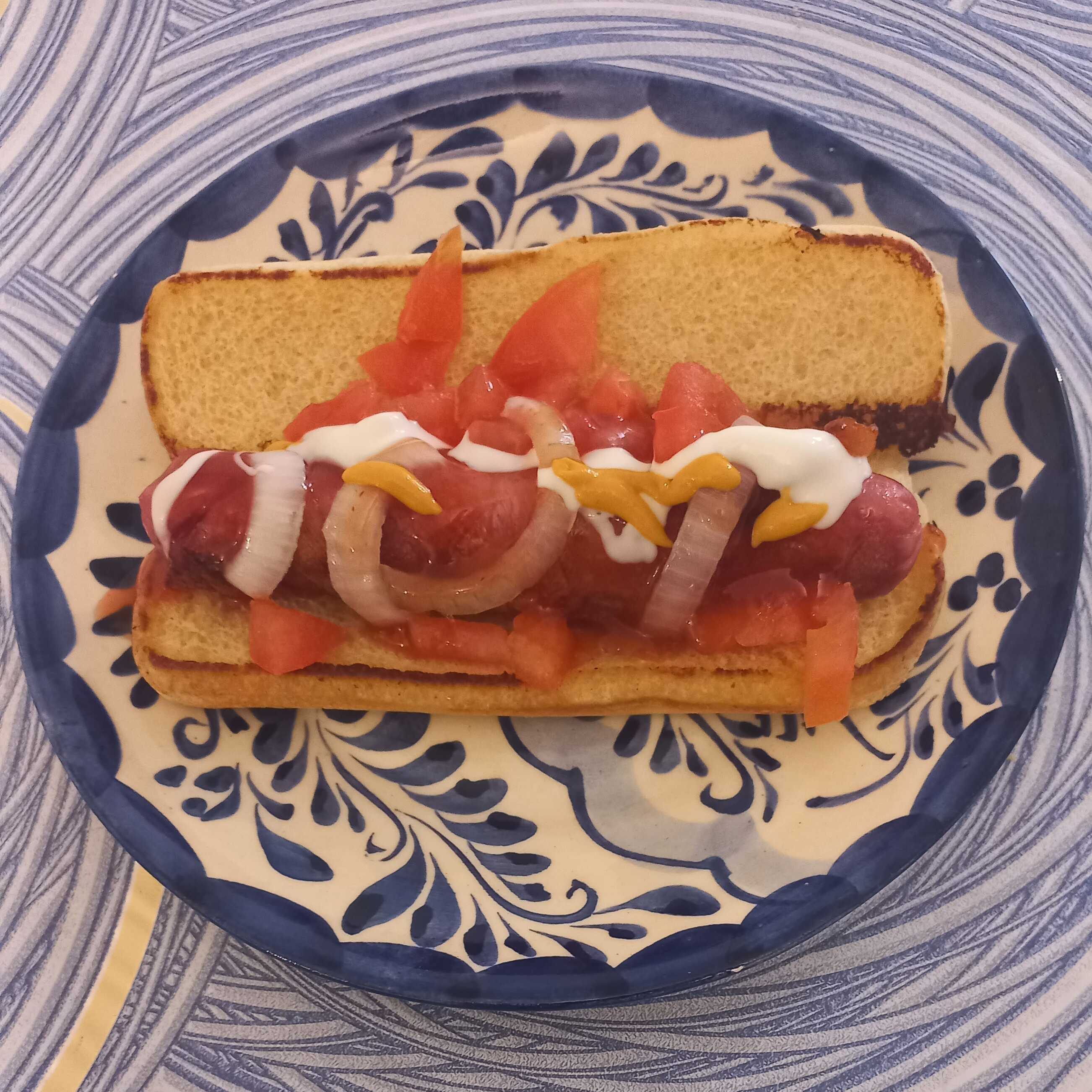Con tocino, cebolla caramelizada, jitomate, aguacate y aderezos.