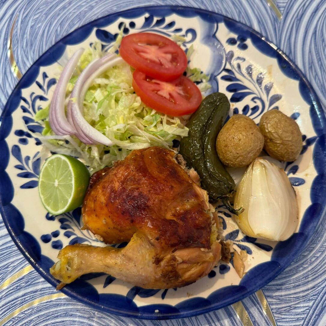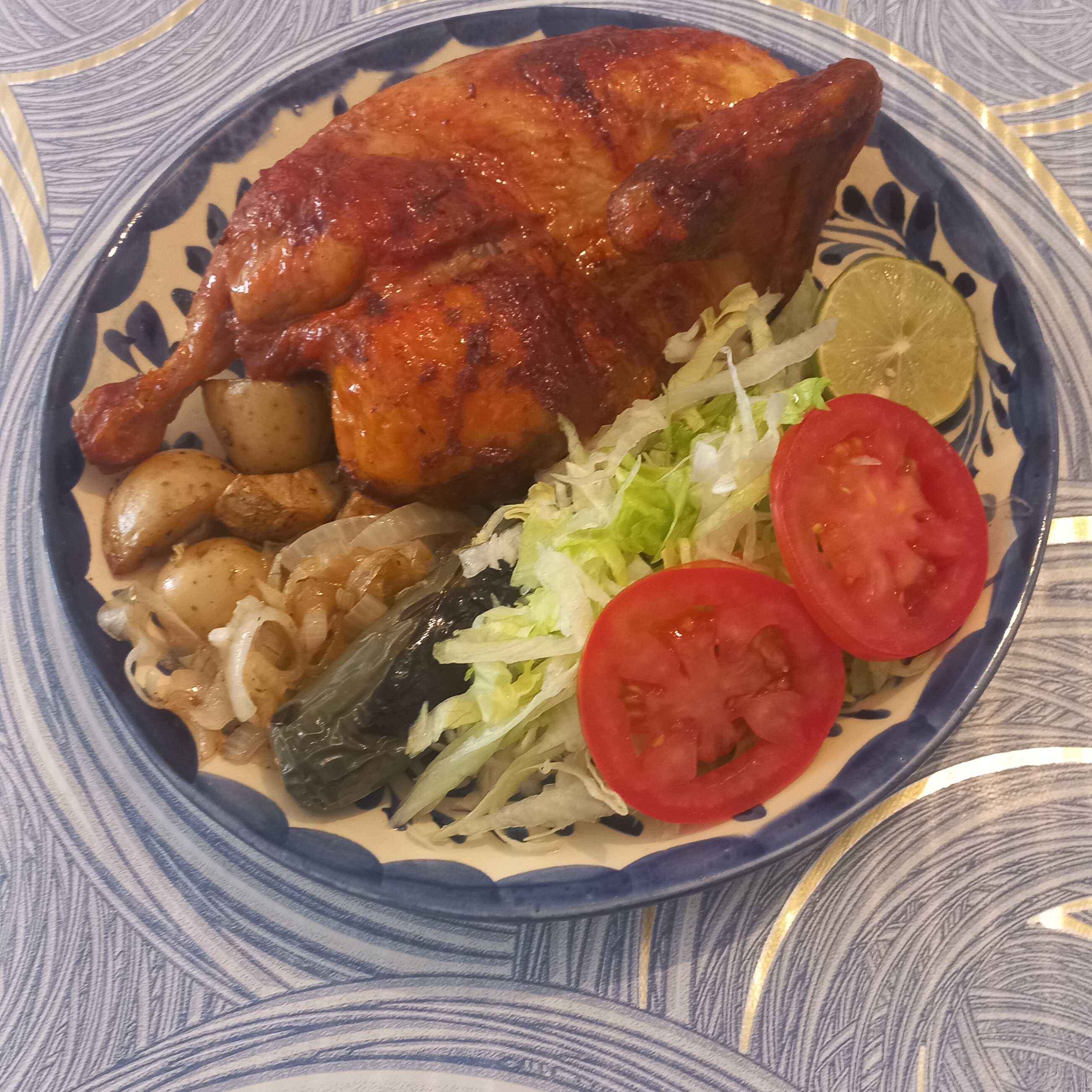½ Pollo + Ensalada + Papas Cambray + Cebolla frita + Salsa
