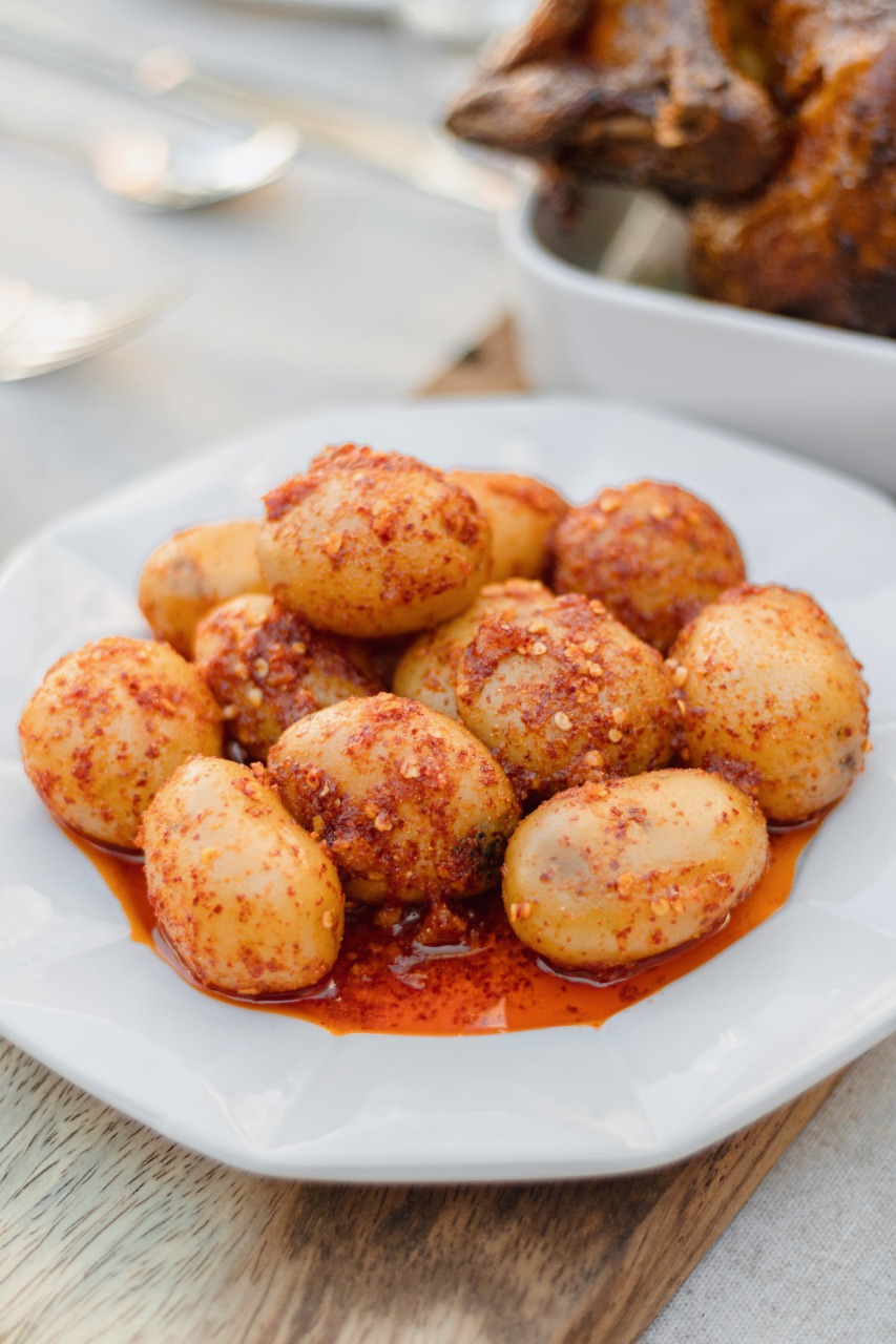 Papa cambray con salsa al ajillo