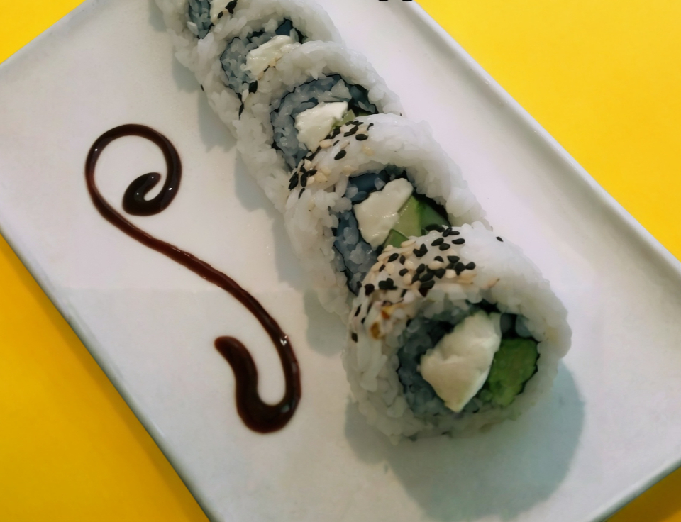 Dentro: aguacate, por fuera salsa sakura y semillas de ajonjoli