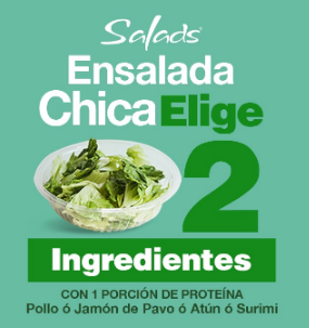 Dos porciones de proteína, cuatro ingredientes de la barra, aderezo y croutons o galleta salada.