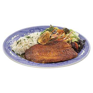 Filete de Pescado a la plancha o al Mojo de ajo o al ajillo (200 g). Con arroz blanco y ensalada de la casa.
