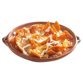 Con salsa verde o roja, queso al gratín, crema, cebolla y frijoles refritos