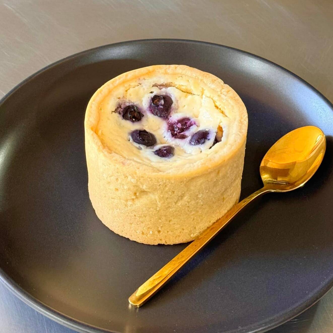Base sablee de vainilla natural, rellena de mezcla de queso ricotta alemán, mantequilla, nata de leche, limón y blueberries.