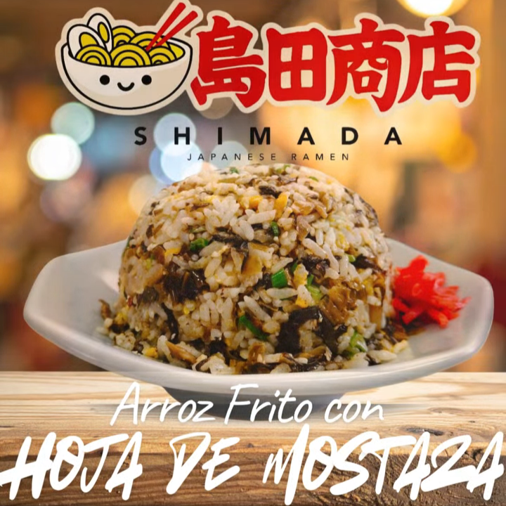 Arroz frito con el sabor auténtico japonés, mezclado con hoja de mostaza para un sabor picante