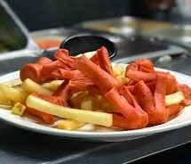 Salchipulpos con papas a la francesa.