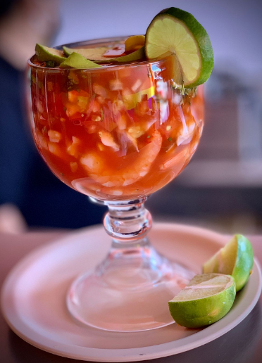Coctel de Camarón, Pulpo y Ostion, Con Aguacate Verduras y El Preparado de la Casa