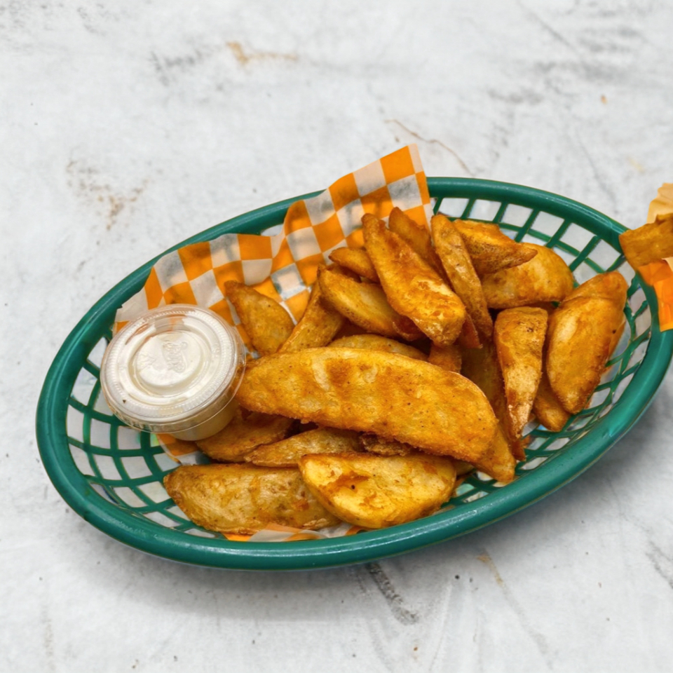 Papas en gajo fritas en aceite.