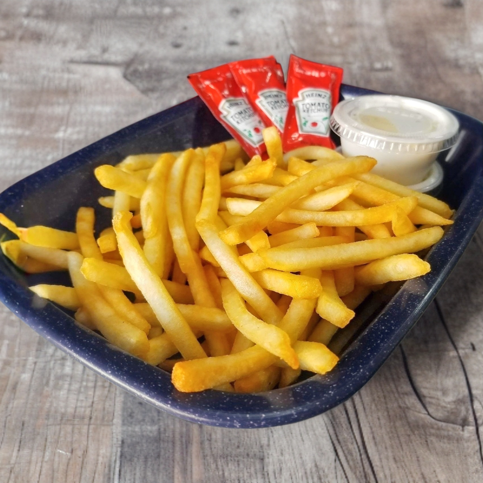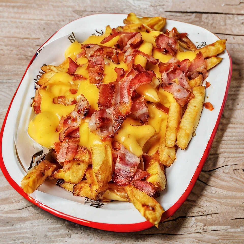 Papas a la francesa con queso y tocino