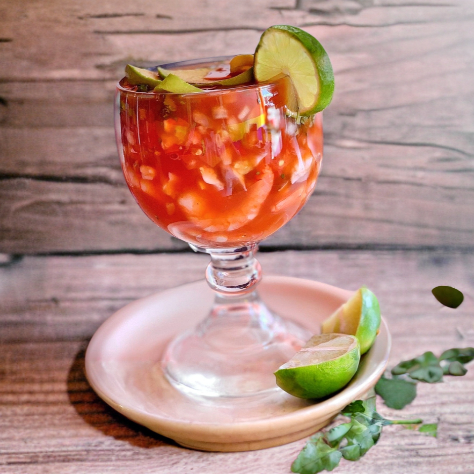 Coctel de Camarón, Pulpo y Ostion, Con Aguacate Verduras y El Preparado de la Casa