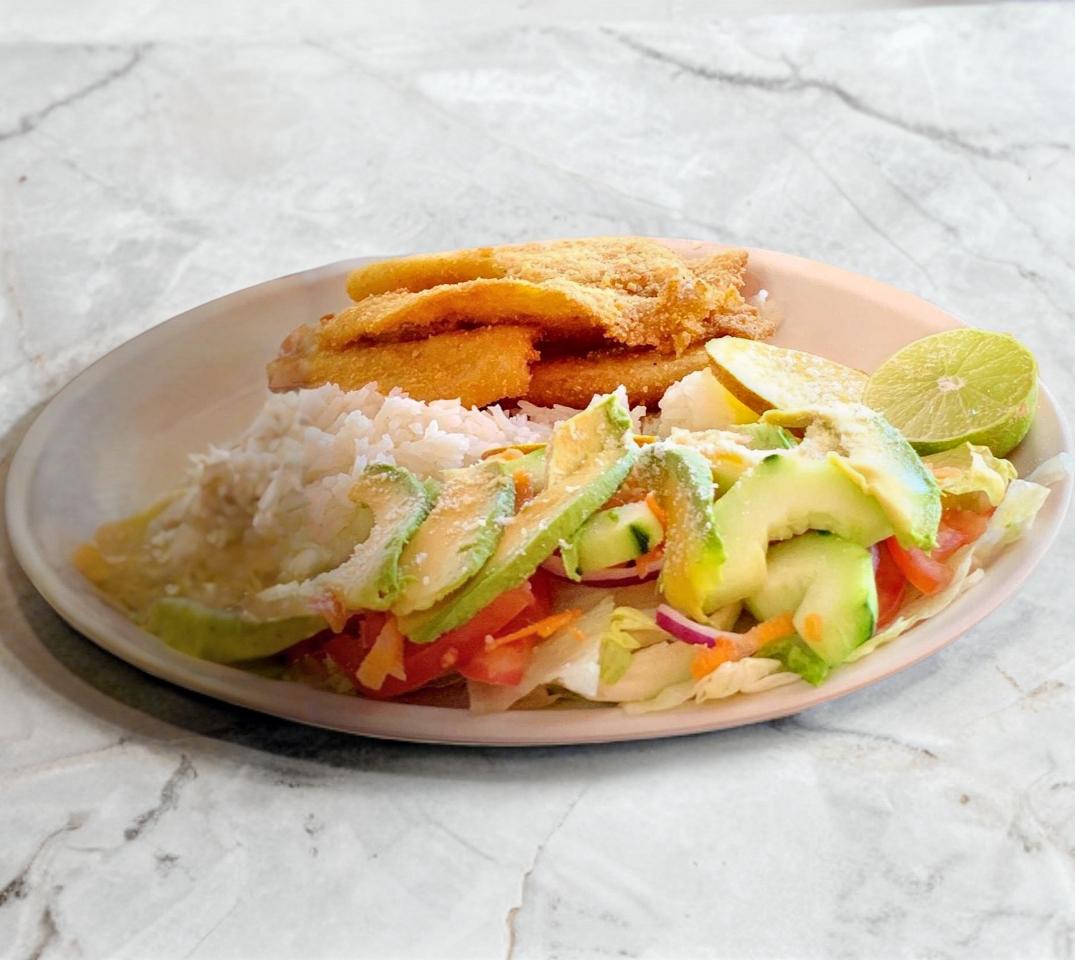 Filete de Pescado Con Arroz o Papas a la francesa y Verduras