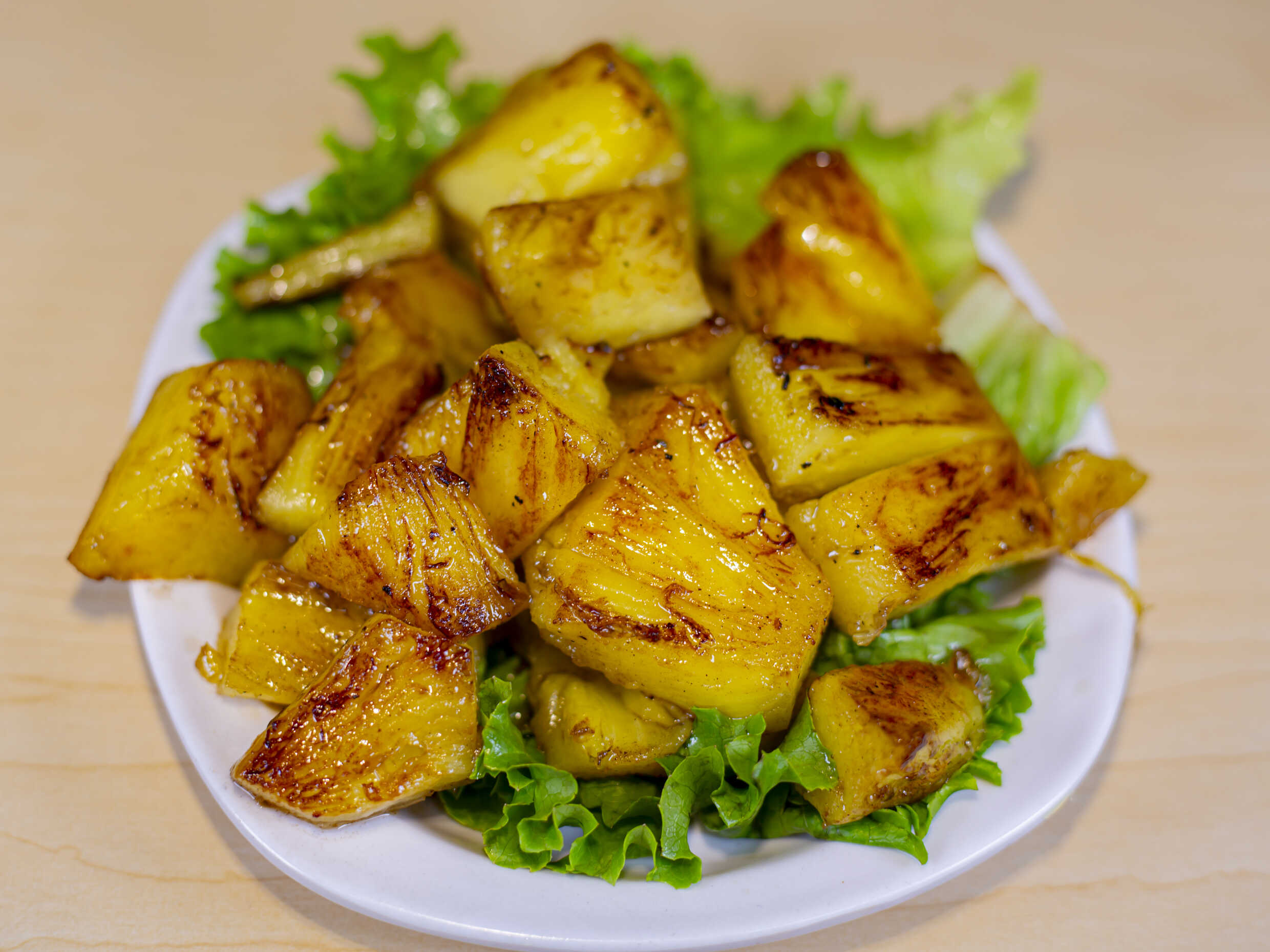 Salchicha de carne de res piña combinada con queso trocitos de tocino.