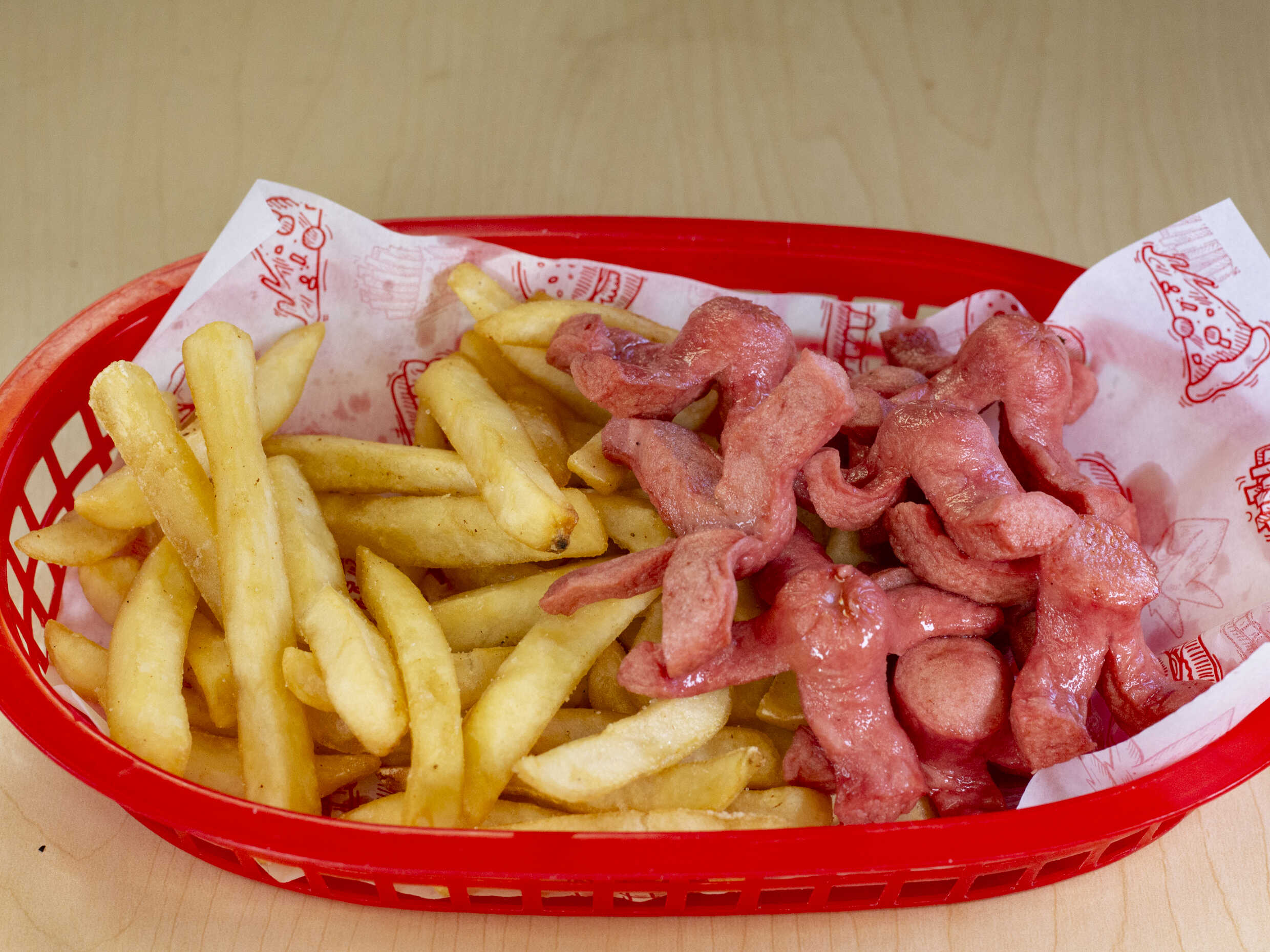 7 nuggets, papas a la francesa y salchicha en pulpo.