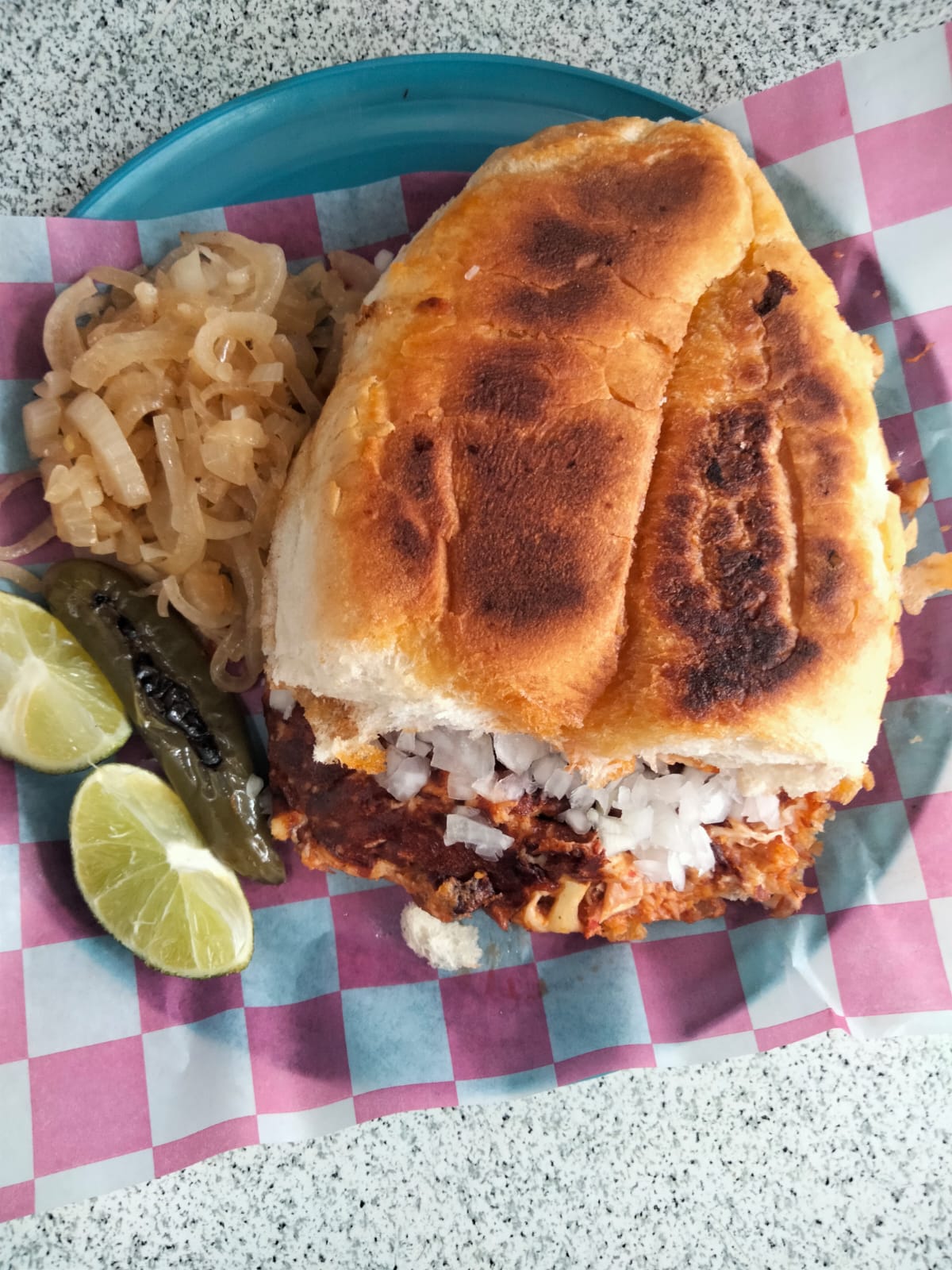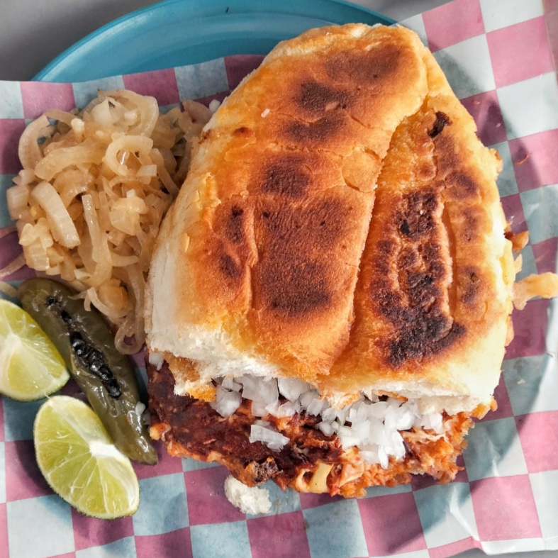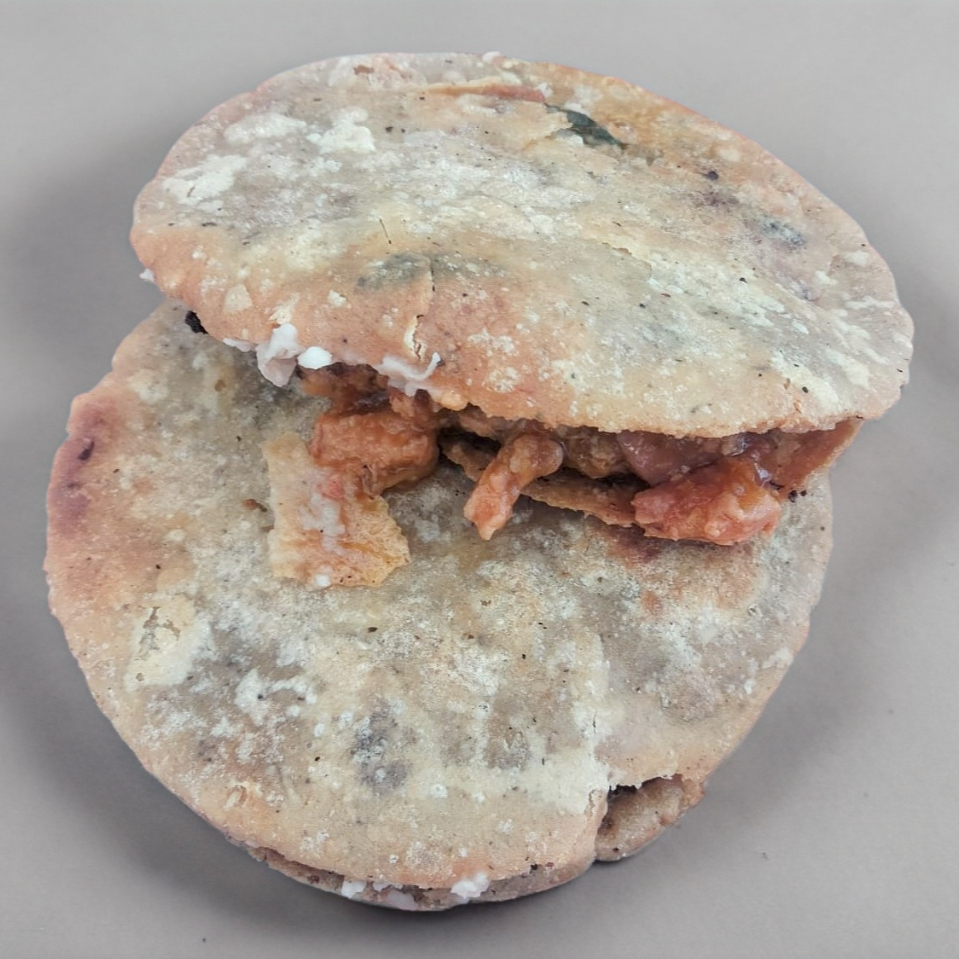 Gordita de maíz frita con hasta dos guisados a elegir.
