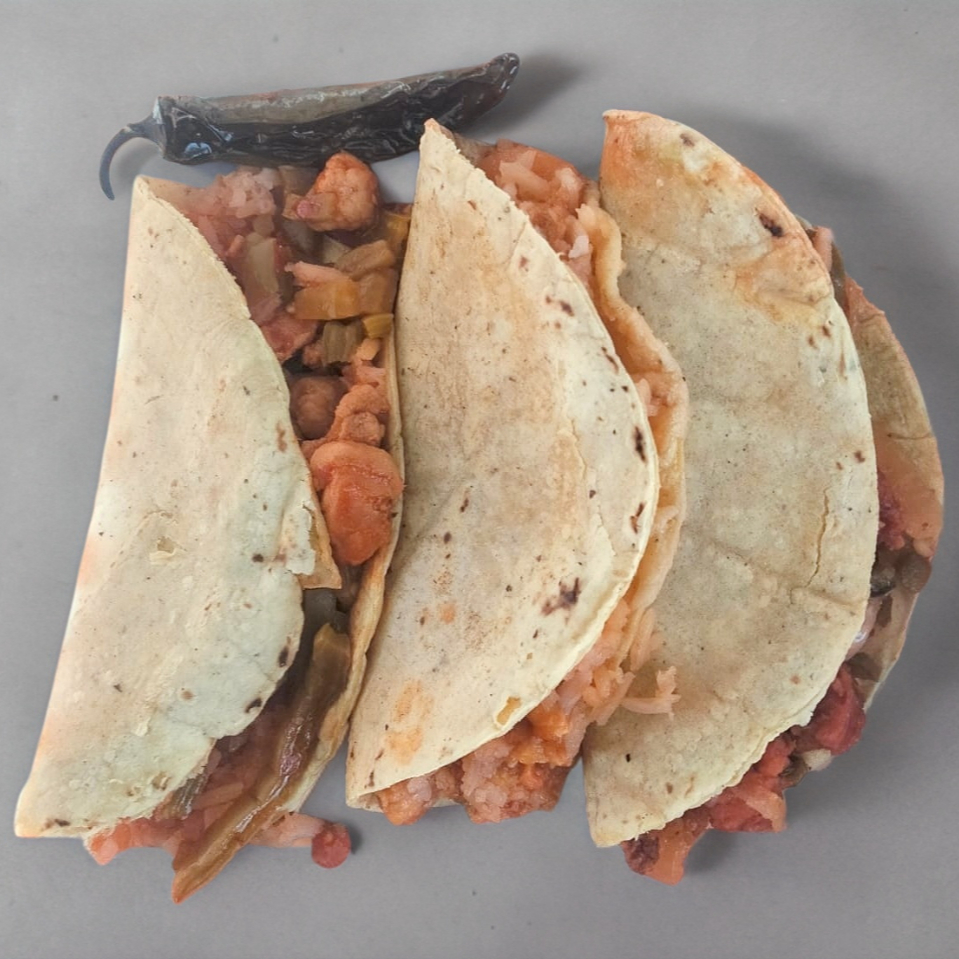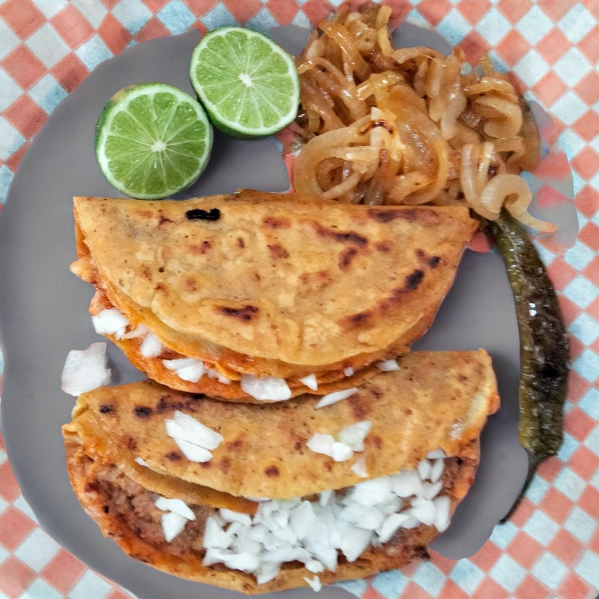 Quesadilla de maíz con hasta dos guisados a elegir.