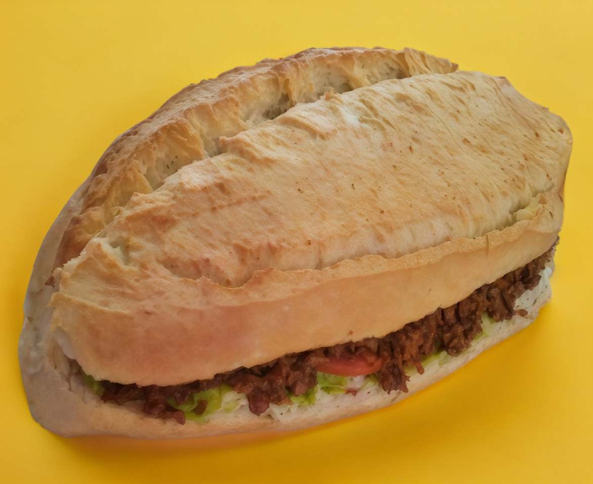 bolillo recien horneado de la chona carne tierna de vacuno enchilada coccion lenta que se deshace en la boca acompañada de su salsa y verdura